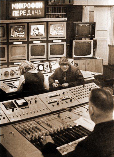 Фото: Строительство телецентра, конец 50-х годов. Монтаж антенны «бабочка» на высоте 200 метров, 1959. Первый директор студии телевидения А.П. Варламова, 1959. Ю.Зайончковский, главный режиссер студии телевидения, 1975. М.Халцова и С.Никулин — ведущие программы «99-209» в студии, 1979.