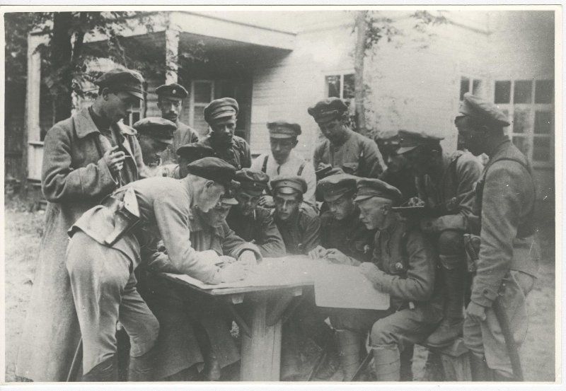 Фото: Пленные красноармейцы под присмотром американских военных, Архангельск. Петроградские комсомольцы на Карельском фронте, 1919.