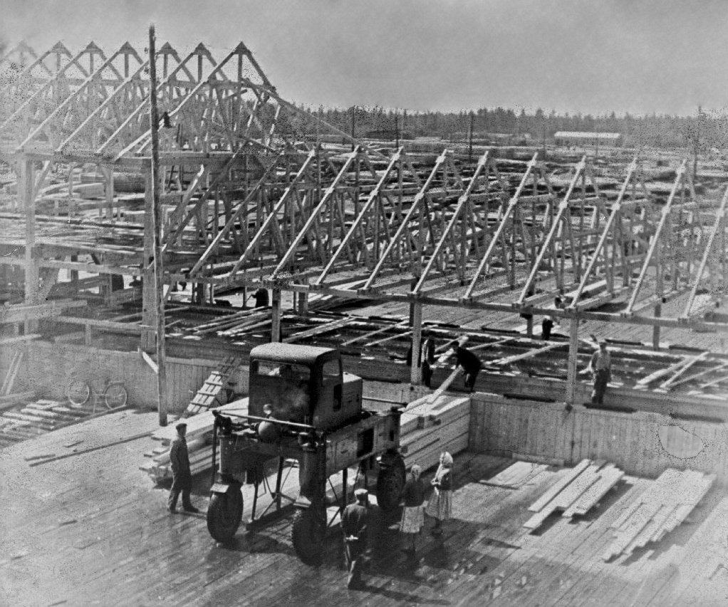 В июне 1926 года началось строительство нового Ильинского лесозавода. Через 11 месяцев, 1 мая 1927 года, в торжественной обстановке был пущен в работу четырехрамный лесопильный завод. Выбор места для лесозавода не был случайным — богатые массивы хвойных лесов в непосредственной близости от реки Олонки и ее притоков, удобные водные пути, связывающие лесозавод с крупными промышленными центрами страны и Ленинградским лесоторговым портом, создавали благоприятные условия для работы предприятия.