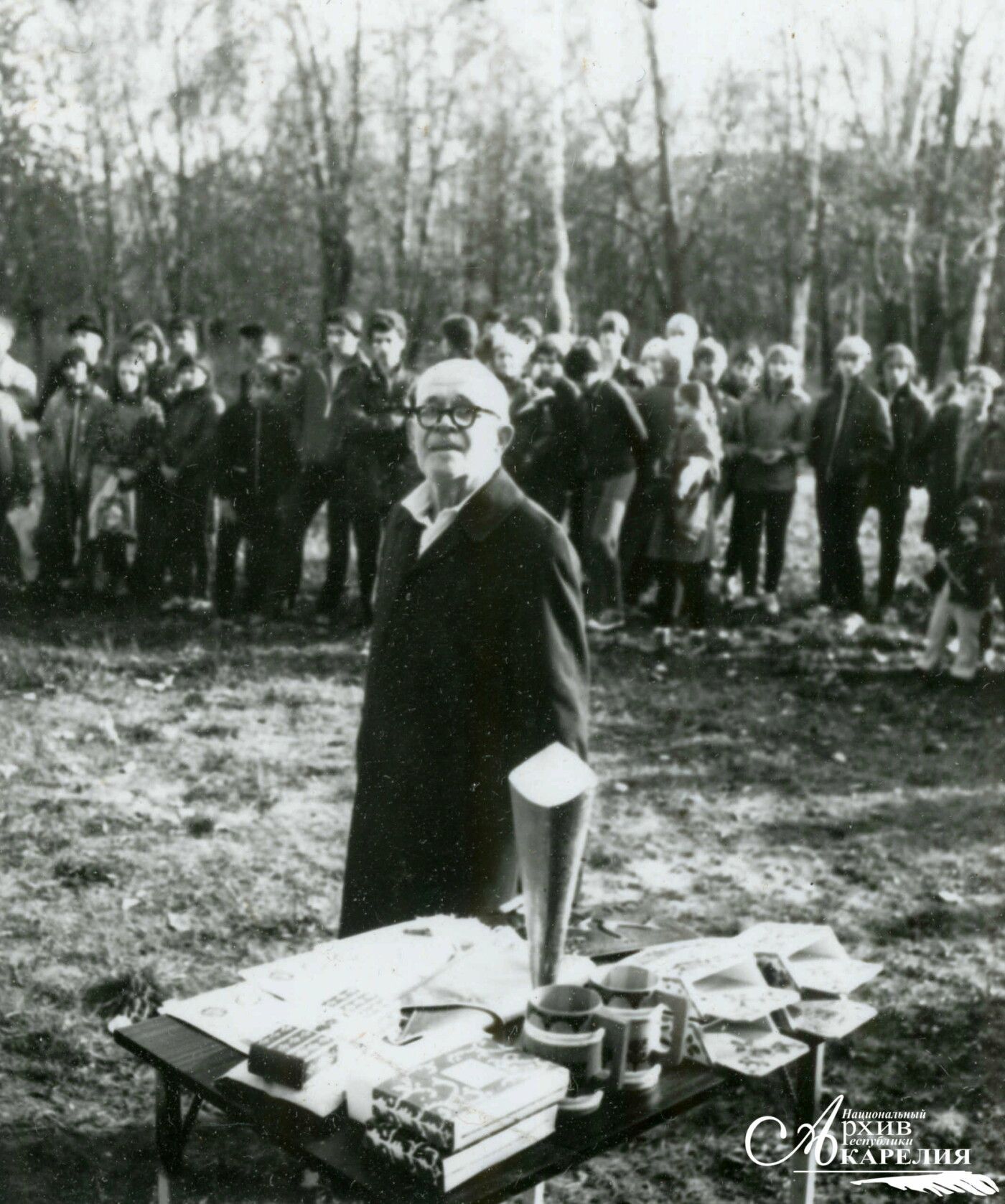 Фото: А.Ф. Кивекяс с победителями легкоатлетических соревнований, 1980. А.Ф. Кивекяс на вручении призов победителям кросса в его честь, 1981.