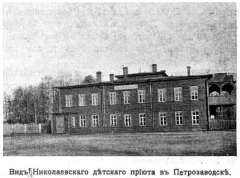 Основал и содержал первый в Карелии детский приют купец М. П. Пименов. Сначала приют назывался Пименовским, в 1855 году в память об императоре Николае I был переименован в Николаевский. Для него построил за свой счет двухэтажный дом с мезонином. Первоначально приют был рассчитан на 20 приходящих детей, но уже в августе того же года при приюте было открыто ночлежное отделение на 10 человек. Дети находились там с 8 утра до 6 вечера, получали питание, обучались грамоте и ремеслу. Позднее при приюте появился огород и сад. С 1869 года приют стал закрытым воспитательным учреждением для девочек от 5 до 16 лет. Приют просуществовал вплоть до 1918 года, и за это время в нем получили образование и воспитание больше тысячи детей.