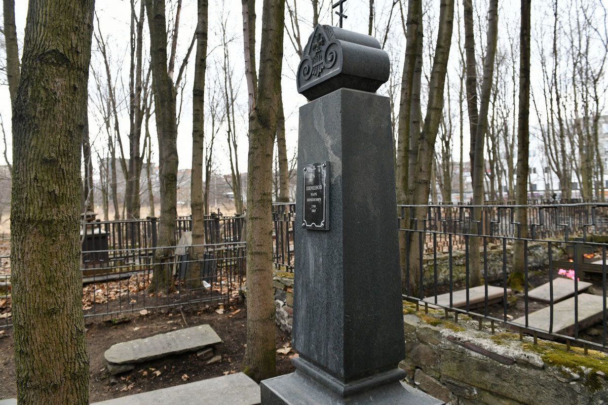 Фото: могила М.Пименова у стен Крестовоздвиженского собора.