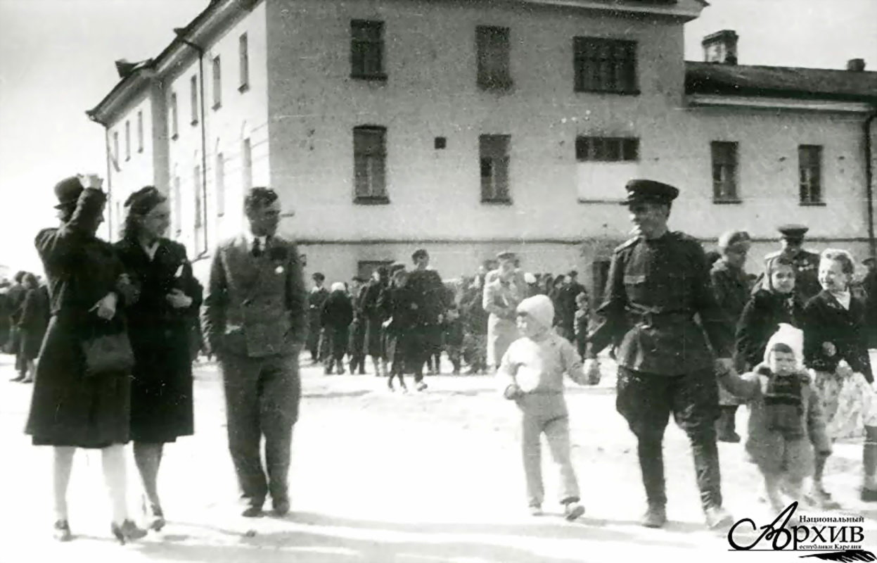 С торжественными речами на митинге выступили секретарь горкома Компартии Ю.В.Андропов, секретарь ЦК КП(б) КФССР Г.Н.Куприянов, председатель СНК республики П.С.Прокконен, мастер Онежского завода Анисимов, машинист Петрозаводского депо Смирнов, заслуженная учительница республики Бонч–Осмоловская, офицер Красной Армии Стенин. Все они говорили о великой победе, достигнутой ценой огромных усилий, о необходимости скорейшего возрождения республики.