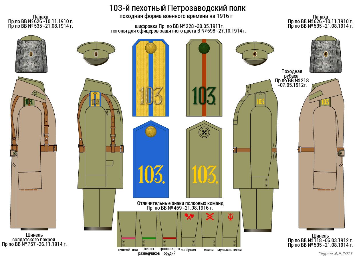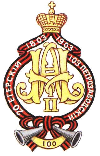 16 мая 1803 года Указом императора Александра I был сформирован 20-й егерский полк. В 1863 г. переименован в 103-й Петрозаводский пехотный полк.