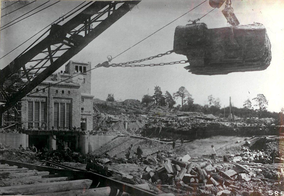 Фото: Строительство деривационного канала 1924-1926 годы. Водоводы строящейся ГЭС. Строительство первой очереди Кондопожской ГЭС закончилось в 1929 году. Первая очередь ГЭС. Вид с нижнего бьефа 1930 год.