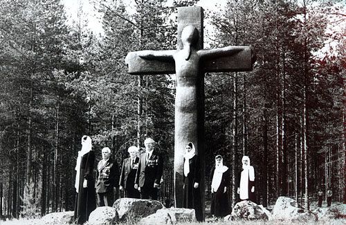 Последняя работа Лео Ланкинена — памятнике русским и финнам, погибшим в «зимнюю» войну 1939 — 1940 гг. «Крест скорби» был установлен в Долине смерти в Питкярантском районе в 2000 году, уже после смерти Лео Ланкинена.