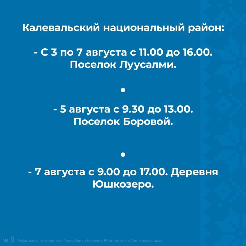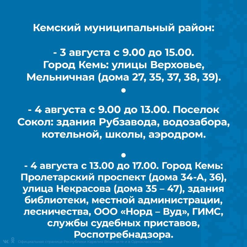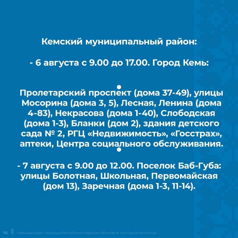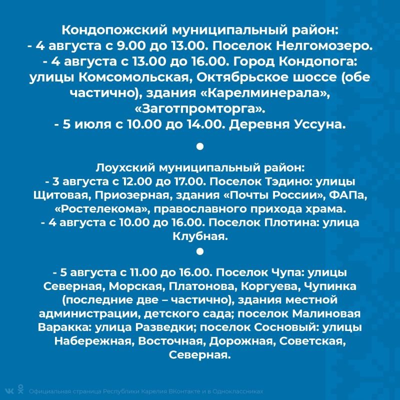 График работ и список районов предоставлен официальной группой правительства Республики Карелия «ВКонтакте»