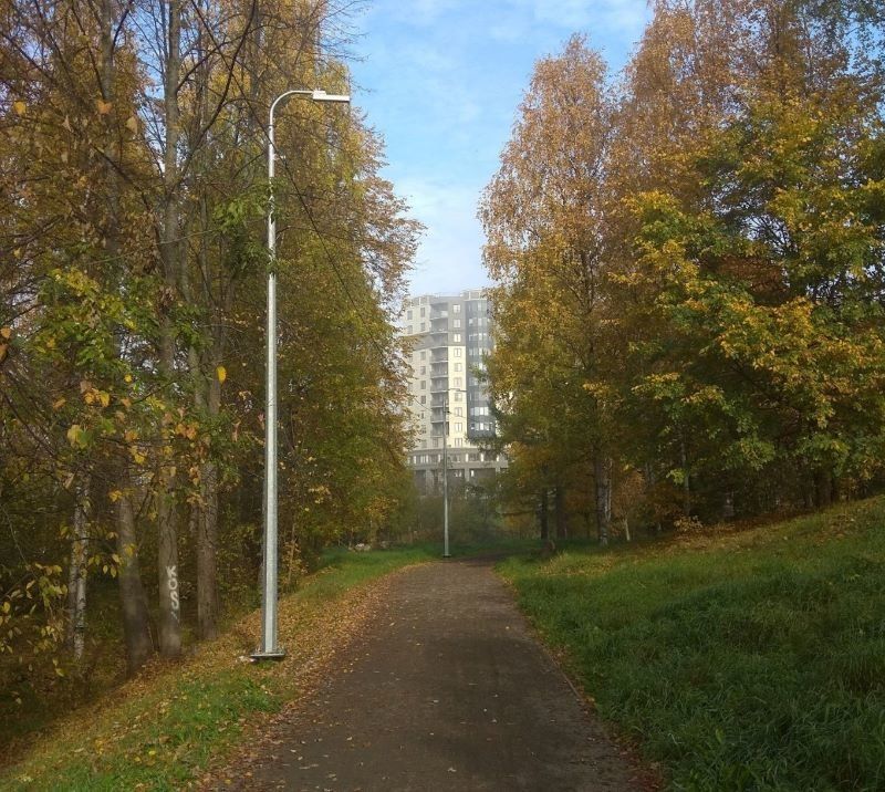 На аллее Зелёная Тропа, которая протянулась от центра Петрозаводска до трассы «Фонтаны», подрядчик установил 79 опор наружного освещения.