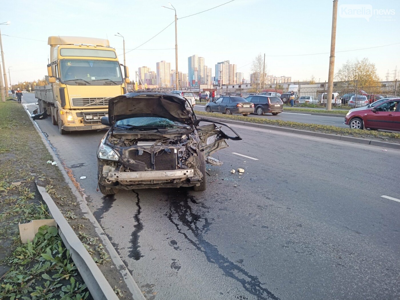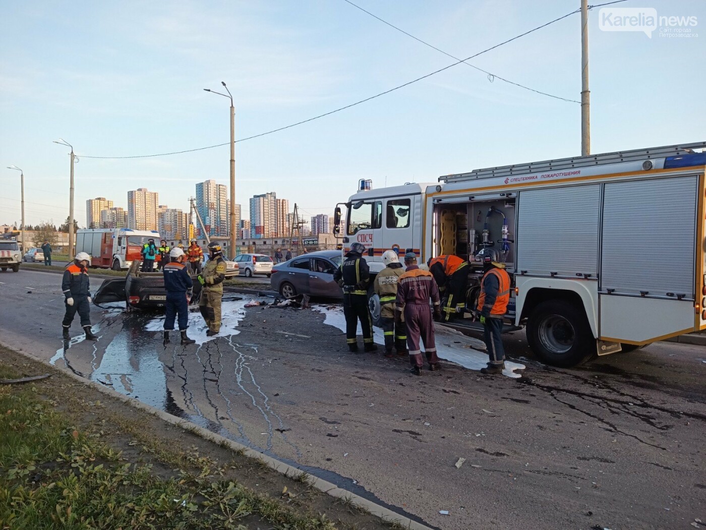В пресс-службе ГИБДД сообщили, что авария произошла около 17:00 часов. По предварительным данным, «Лада Гранта» ехала с Древлянки на Кукковку по Карельскому проспекту. В попутном направлении двигался автомобиль «Митсубиси Харизма», машины столкнулись. От удара «Лада Гранта» вылетела через разделительную полосу, где врезалась в «Лексус» и «Киа Рио».