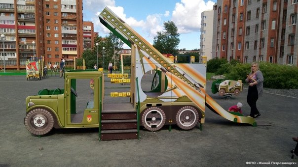 В Петрозаводске появилась детская площадка с конструкциями, стилизованными под военную технику времен Великой Отечественной. Как сообщает пресс-служба городской администрации, игровую зону обустроили на бульваре Победы, поэтому был выбран именно такой дизайн.