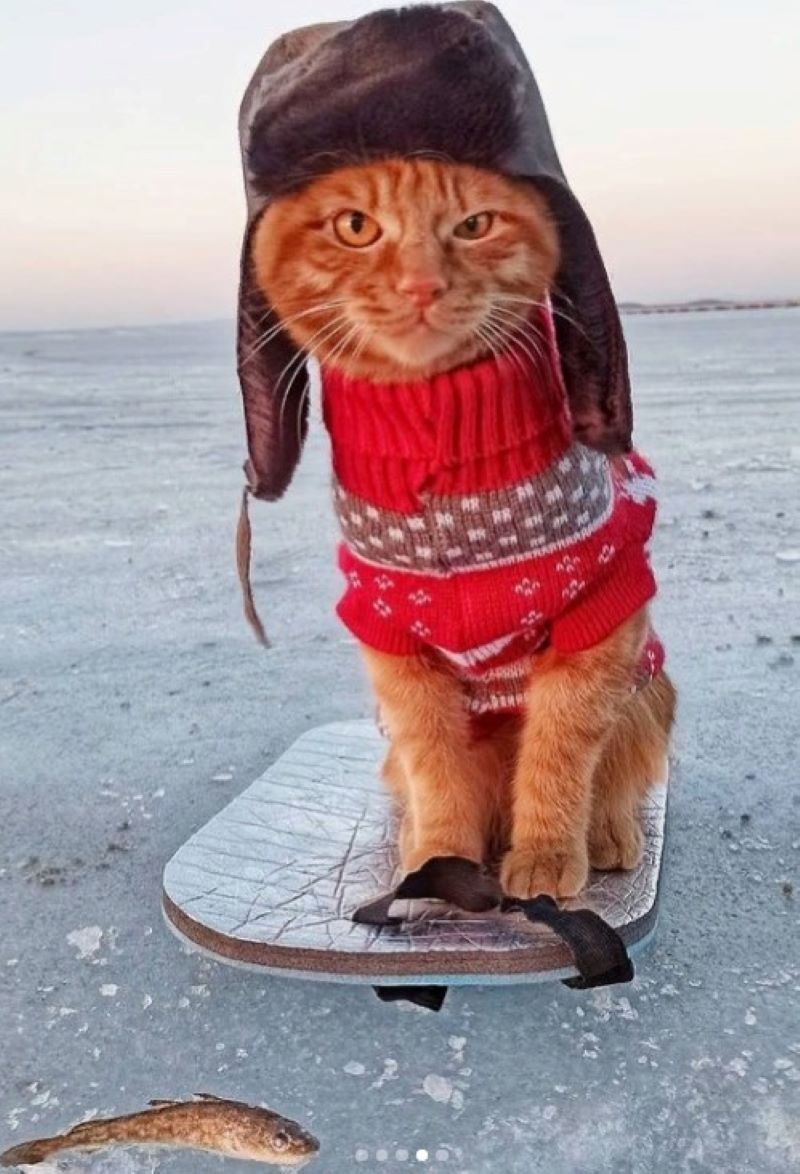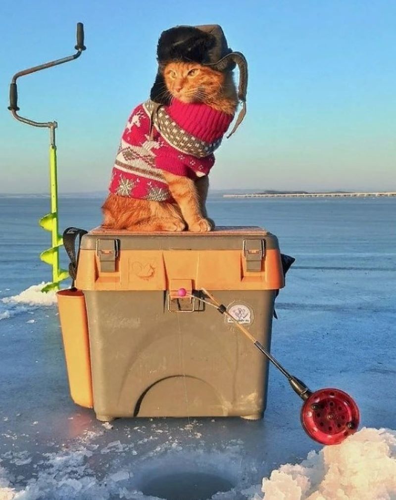 Хотя кот-рыбак и оказался не карелом, но это прекрасный повод найти подходящее обмундирование для вашего кота и снарядить его на рыбалку вместе с вами. Может он даже пригодиться — отгонять птиц от пойманной рыбы.