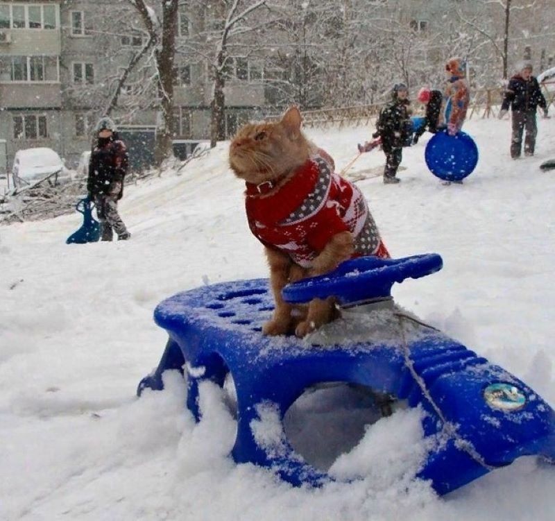 Как показал небольшой поиск: кота кличут Симба, проживает он во Владивостоке в Приморском крае. И вместе со своим хозяином-фотографом успел не только рыбки половить, но и принять участие в нескольких фотосессиях. Кроме того, Симба любит покататься на санках.