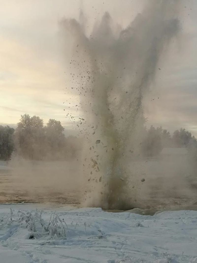 Специалисты-подрывники снижают уровень воды на реках Карелии.