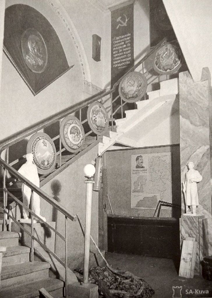 Лестница музея, украшенная гербами и статуями. г. Петрозаводск. 20 октября 1941