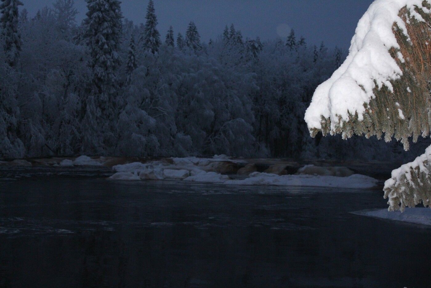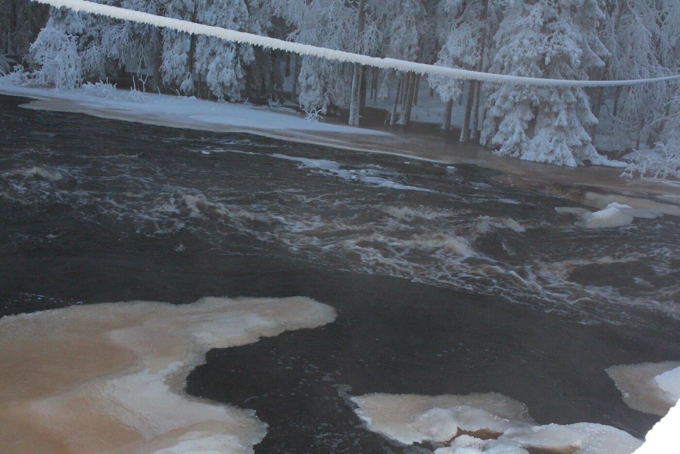 И всего-то недели хватило, чтобы найти дорогу. Утром перед завтраком обнаружили, что пропала со стола тарелка с оладьями, расслабились. Володя пошёл с обходом вокруг дома и дальше. Следы после снегопада четкие, пришла от реки. Это ж надо было пройти по ручью до реки Тарасийоки, дальше по берегу нашей реки, Суойоки, дошла до моста железного и прямиком к нашему дому. На крылечке отдохнула, никто не открыл и пошла в знакомую лазейку под верандой. Я, конечно, понимаю, лучше халявная еда и тепло, так аккуратно выложила оладушки вдоль плинтуса, но где делась тарелка, пока не нашли.