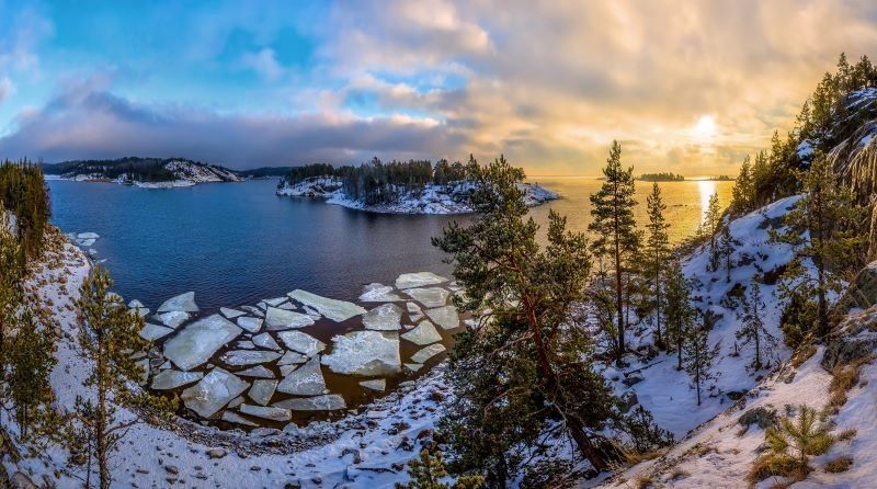 Температура воздуха по Карелии ночью -12, -17, при прояснениях местами до -23, днем -10, -15, местами до -19.
