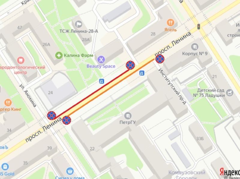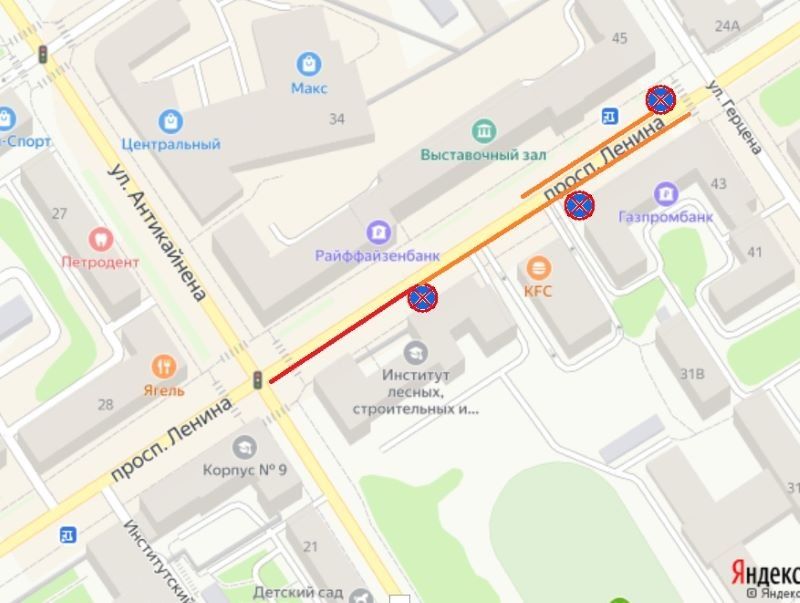 В ночное время (с 0:00 до 6:00) будет запрещена остановка на проспекте Ленина по четной стороне от улицы Герцена до заездного кармана, по нечётной до дома №31, а также по нечётной стороне проспекта Ленина от Институтского проезда до улицы Анохина. Постоянно ограничения будут действовать по нечётной стороне от здания № 31 до улицы Антикайнена и по чётной стороне от улицы Анохина до дома № 28.