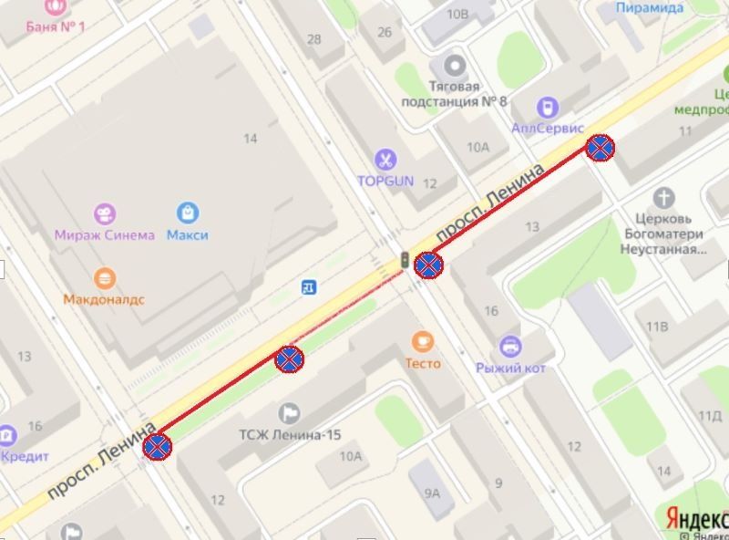 Так, полностью будет запрещена остановка на проспекте Ленина: по нечетной стороне между улицами Куйбышева и Пушкинской, по нечётной стороне между улицами Дзержинского и Андропова.