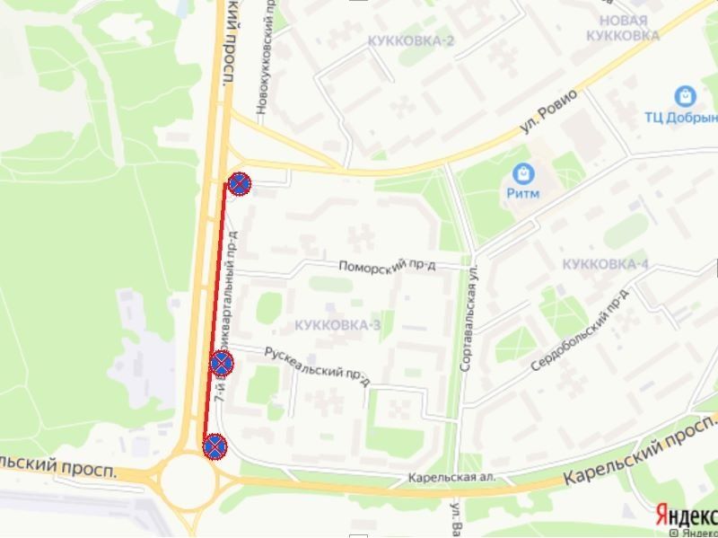 Постоянные ограничения будут действовать по чётной стороне Лесного проспекта от Лососинского шоссе до Высотного проезда, на Кукковском кольце, по нечётной стороне Комсомольского проспекта от Карельского проспекта (Кукковского кольца) до улицы Ровио, а также на Лыжной улице (между улицами Мончегорской и Ломоносова).
