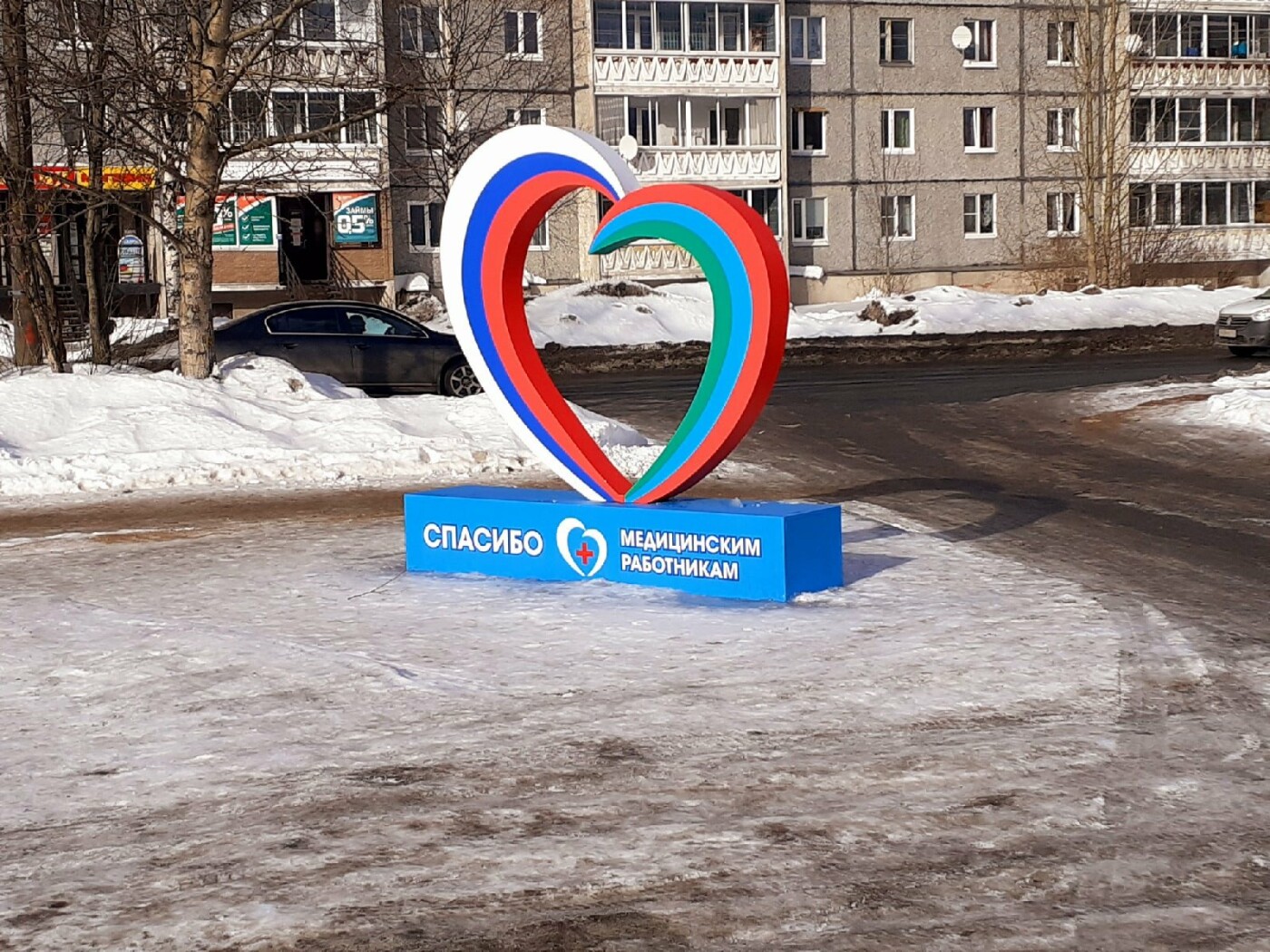В Медвежьегорске вандалы повредили арт-объект в новом городском сквере, посвященном медикам. Сегодня, 3 марта, «ВКонтакте» появились фото с места происшествия – на снимках видно, что кто-то выломал довольно большой кусок скульптуры у ее основания. Вряд ли случившееся можно списать на случайность.
