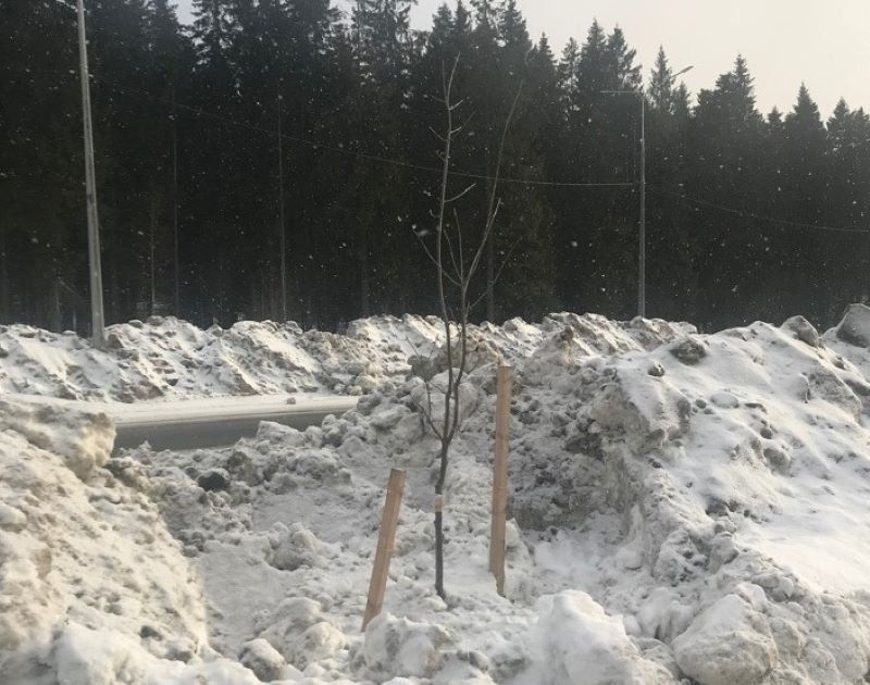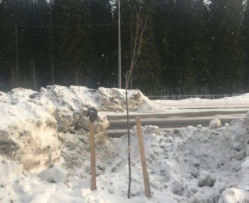 Напомним, что саженцы завалили грязными ледяными глыбами во время уборки улиц. Таким отношением к посадкам были возмущены горожане, которые выложили фотографии в паблик «ДТП ПТЗ и Карелии».