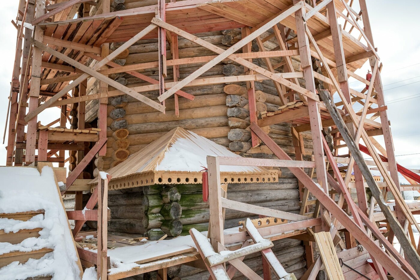 С тех пор храм пытались реставрировать несколько организаций, которые откровенно провалили проект. В 2019 году конкурс выиграла санкт-петербургская компания «Анфилада», которая тут же наняла субподрядчика в лице Архитектурно-реставрационного центра «Заонежье». Специалисты центра перевезли остатки гниющих бревен из Типиниц в Петрозаводск, где и началось восстановление церкви. За эти пару лет реставраторам удалось сделать невозможное – практически восстановить уничтоженный храм.