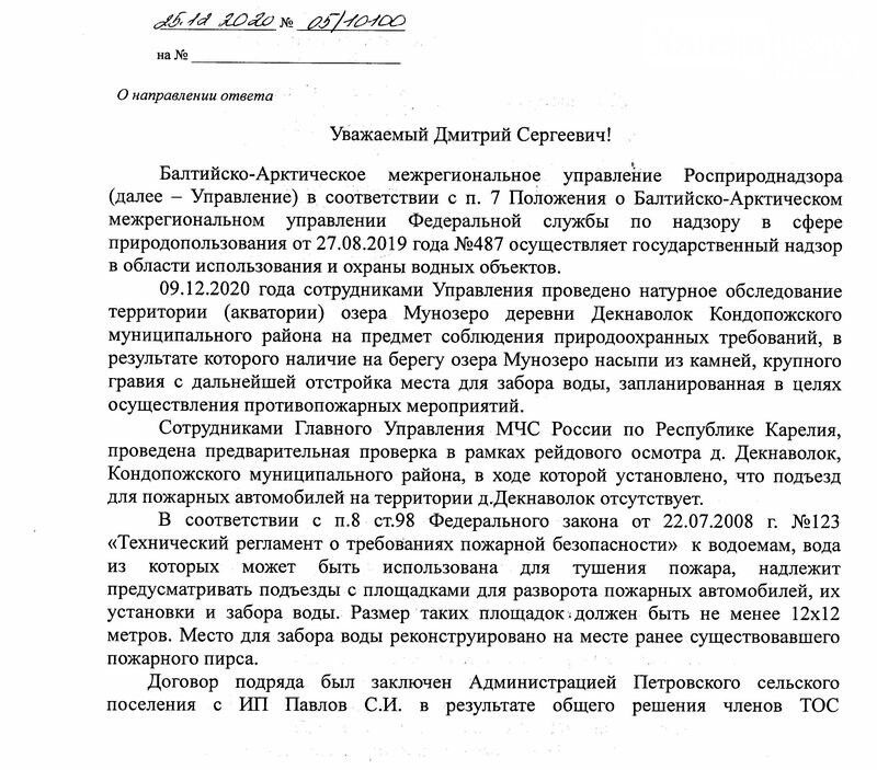 Как рассказал Дмитрий Мартынов нашему порталу, полицию уже поддержал суд, согласившись с мнением МВД. В Росприроднадзоре ушли от ответа, написал лишь, что в деревне нужен пожарный пирс и новое место для забора воды реконструировано на месте старого. Про строительный мусор ни слова.
