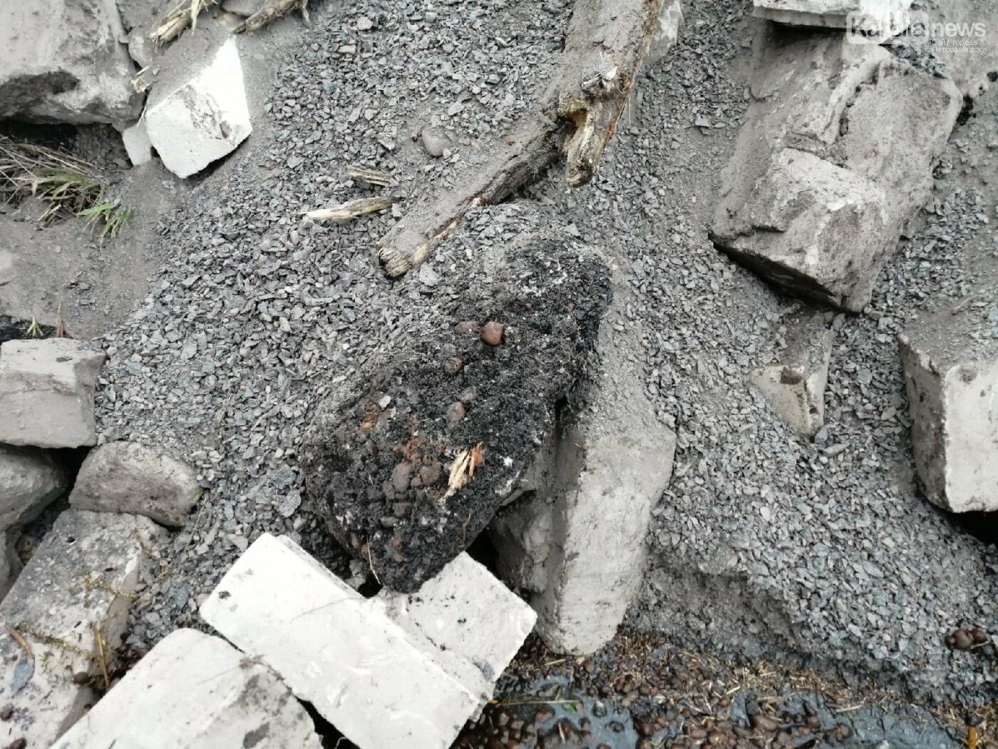 Так, в отсыпке пирса есть куски асфальта, арматура, доски, резиновые покрышки и прочие явно бывшие в употреблении материалы, которые и называются строительным мусором.