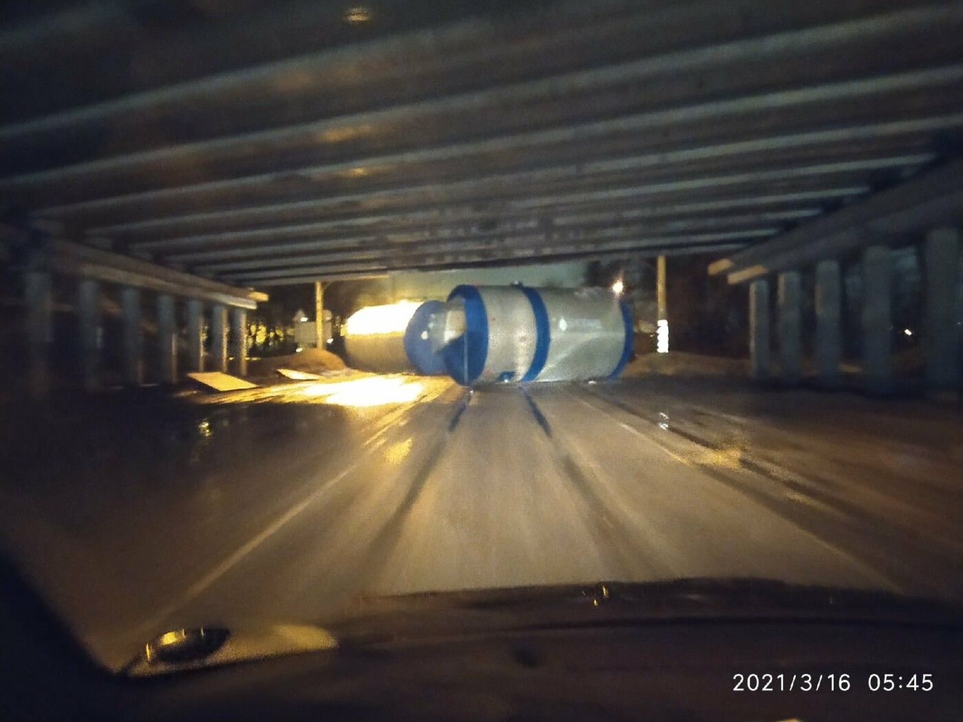 ДТП с участием грузовика произошло в ночь на 16 марта на 23-м километре трассы «Кола», на пересечении с Колтушским шоссе. Большегруз потерял бочки при попытке проехать под мостом. Уточняется, что в инциденте никто не пострадал, а цистерны были пустыми.