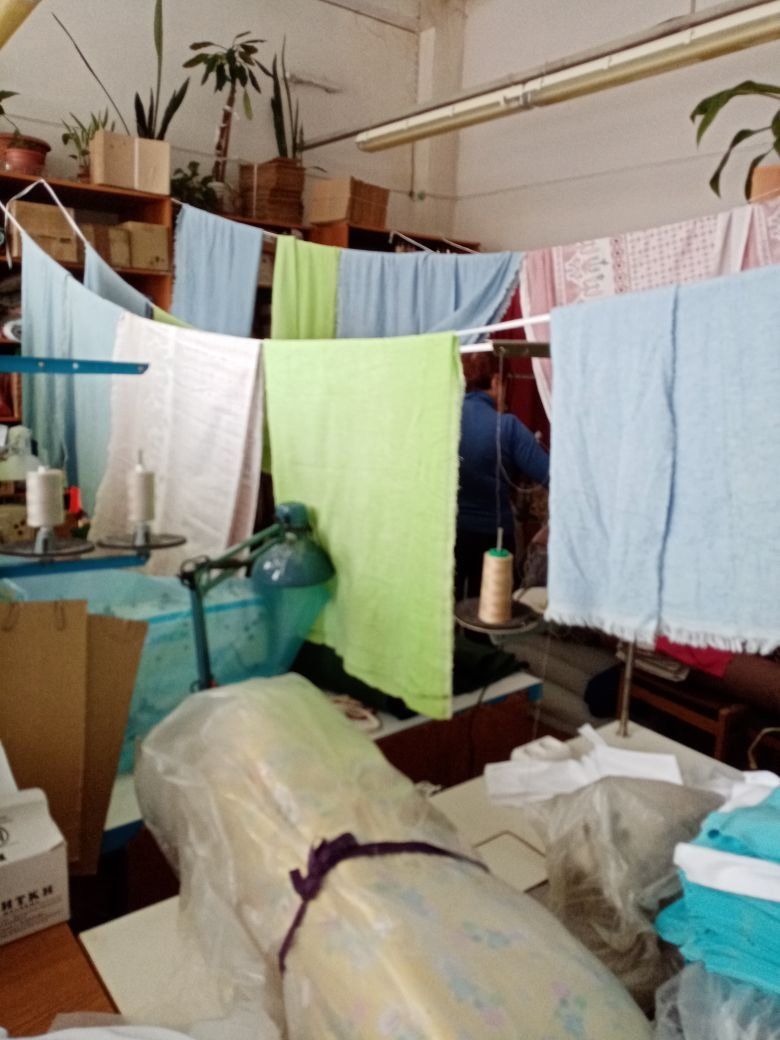 В течение восьми дней мы разматывали рулоны ткани для просушки и затем их сматывали. Не все удалось спасти. На восьмой день обнаружили появление черной плесени, некоторые материалы пришлось выбросить. По предварительным оценкам, пострадало более километра ткани. Под воздействием горячей воды натуральные ткани деформируется, дают усадку и из них уже нельзя шить качественные изделия. Есть способы восстановить, но это очень затратно. Приходится брать домой и отдельными отрезами приводить в порядок. Можете представить, сколько уйдет времени, воды, электроэнергии и сил.