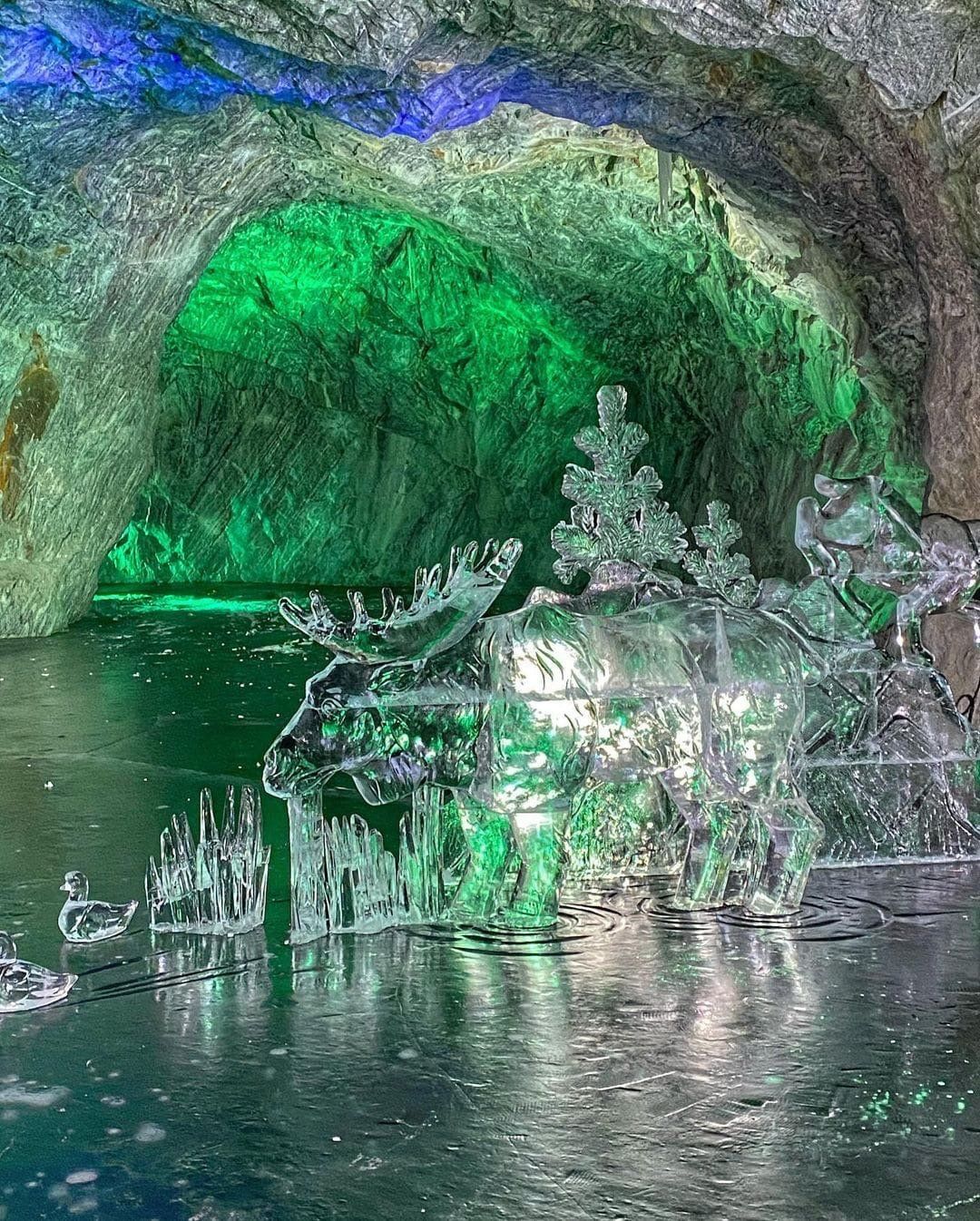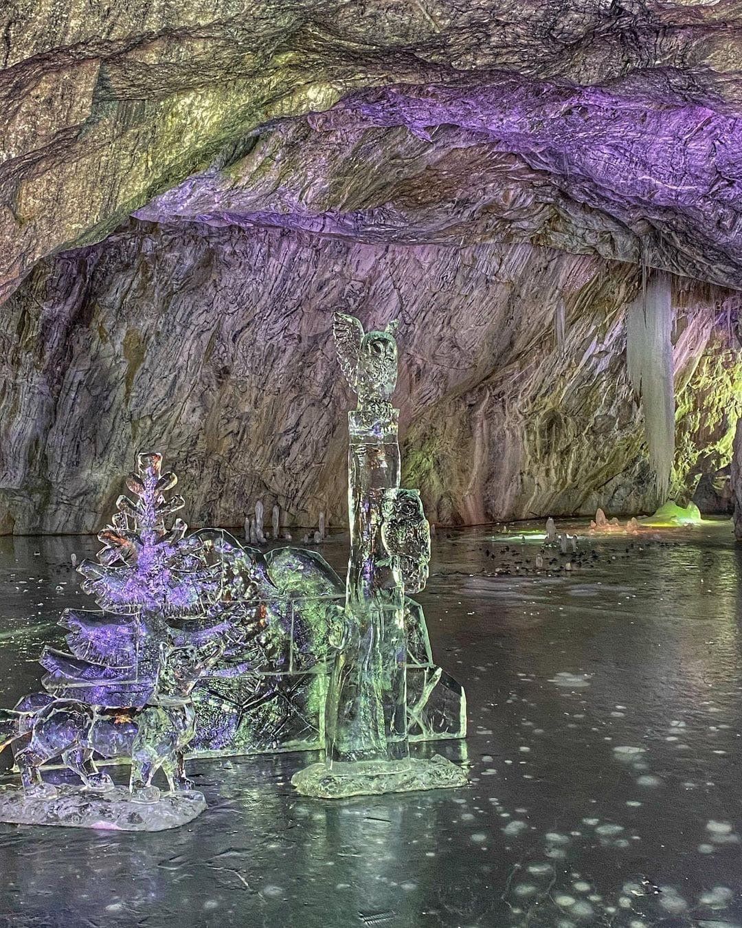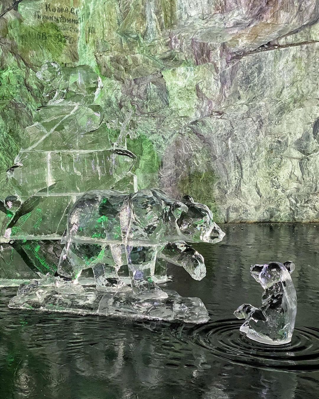 В Сети появились снимки ледовых скульптур в рускеальских пещерах. Фото опубликовал официальный паблик горного парка.
