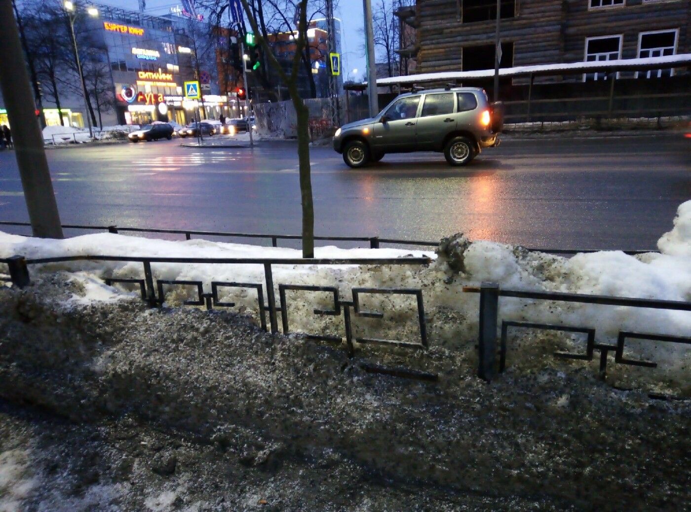 Активистка Дарья Каликина выложила на своей странице «ВКонтакте» сделанный на днях снимок центрального проспекта карельской столицы. На фото видно, что установленные недавно оградки уже частично пора менять – кто-то погнул и выломал несколько фрагментов.