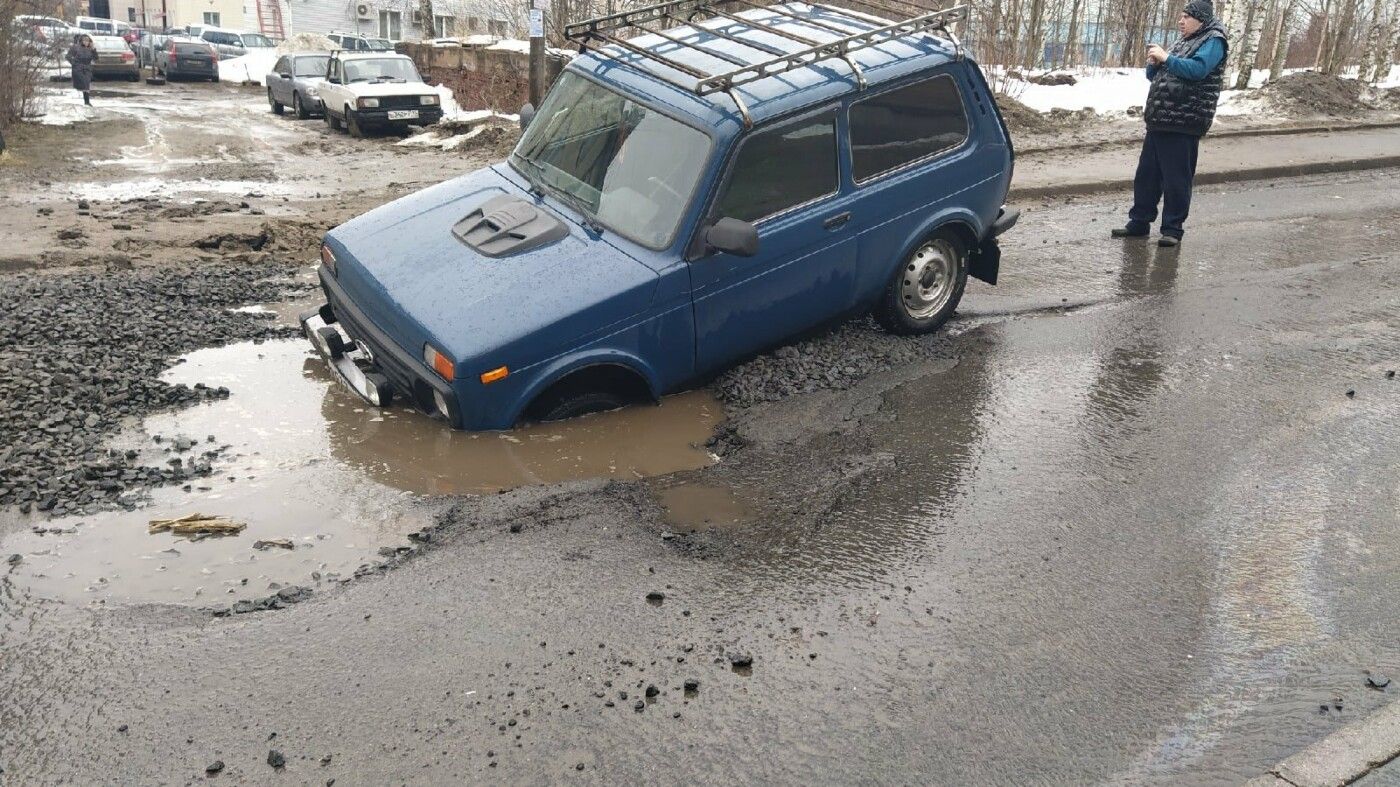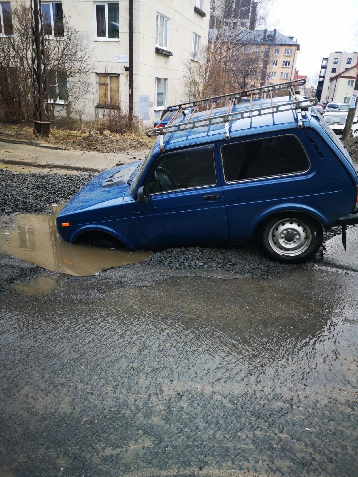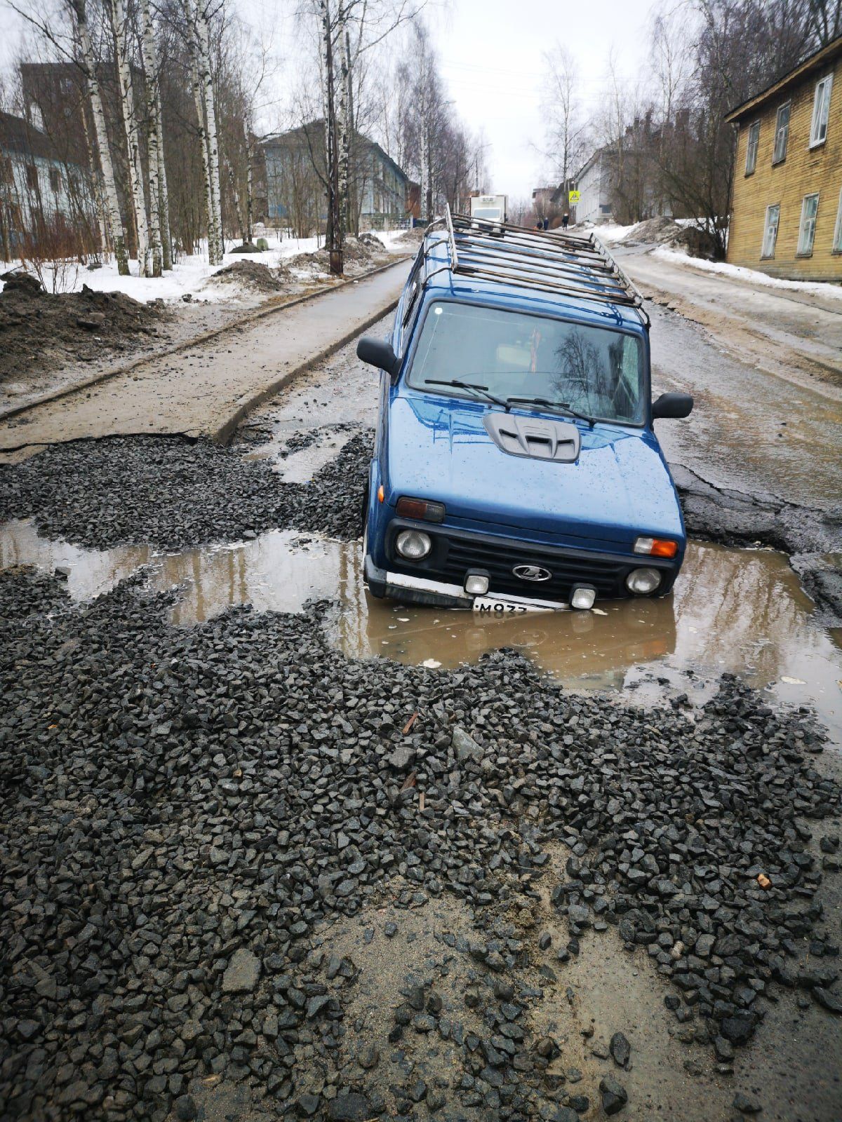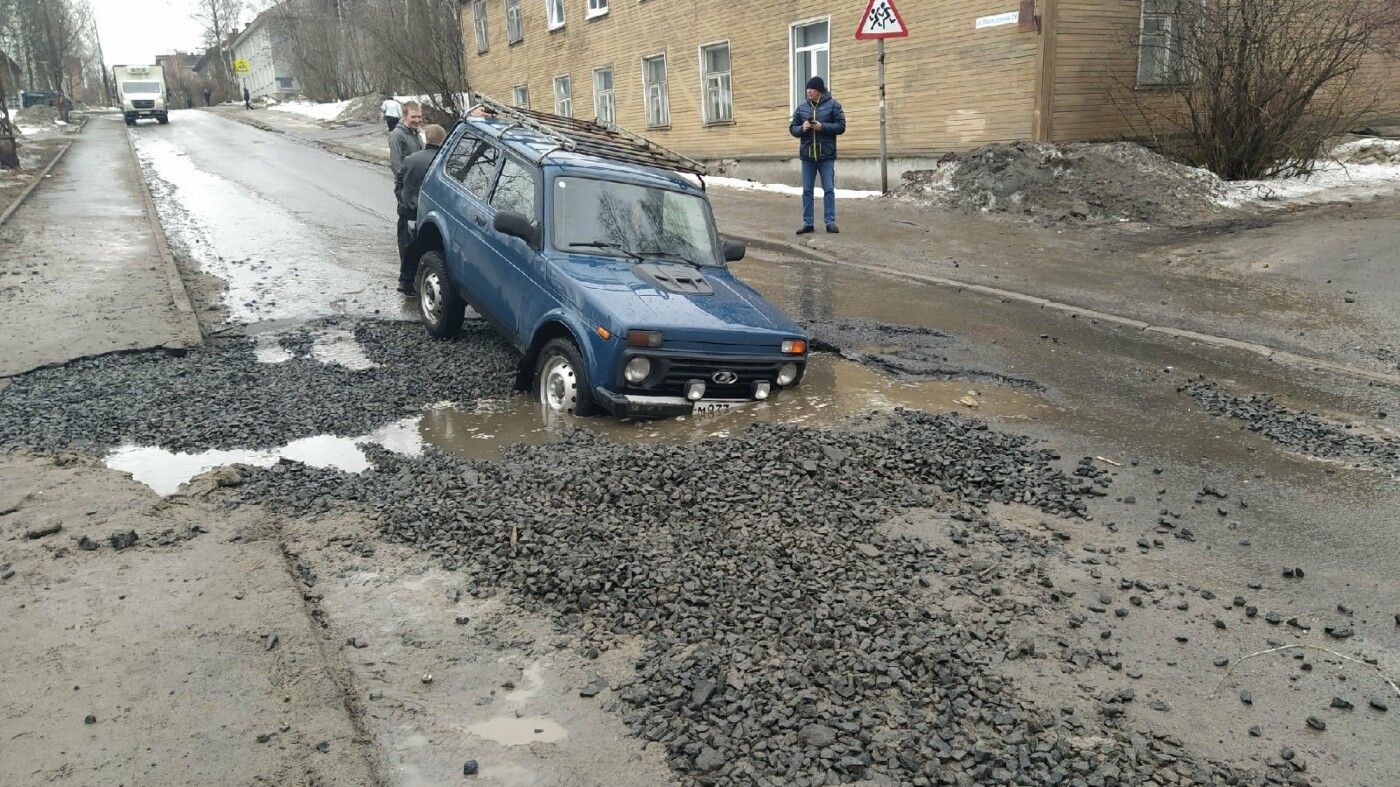 Очевидцы рассказали, что снимок сделан около дома № 25 по улице Машезерской – это расширенный центр города. Яма на автодороге в карельской столице оказалась настолько глубокой, что даже внедорожник не смог ее преодолеть.