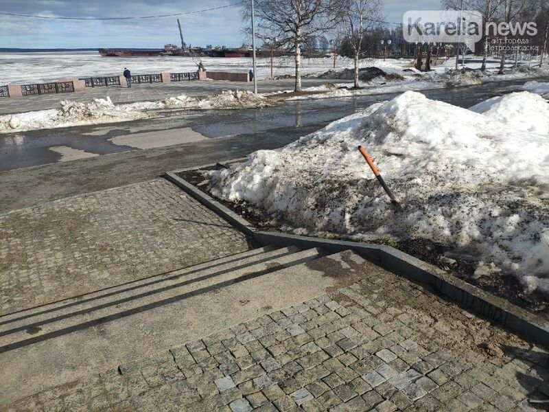 Новая лестница на улице Пушкинской не выдержала сюрпризов погоды и провалилась. О провале стало известно сегодня утром. Фото появились в группе «Подслушано в Петрозаводске».