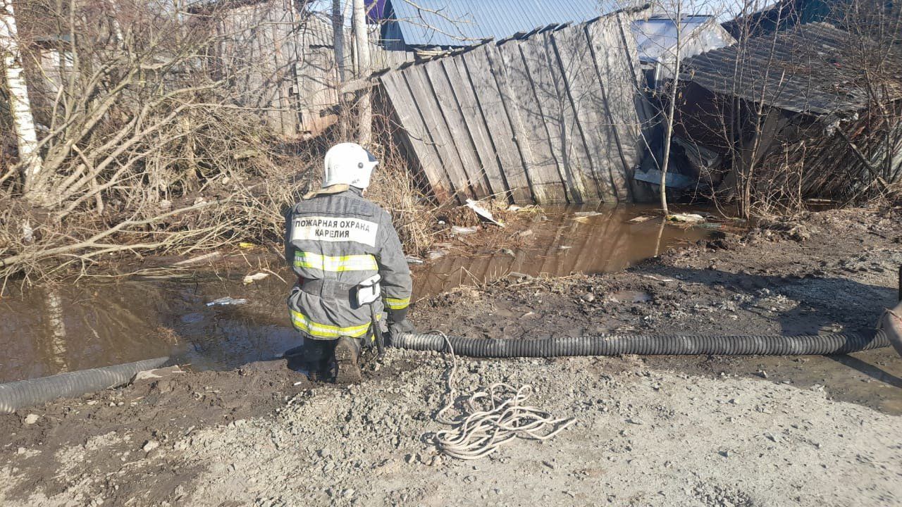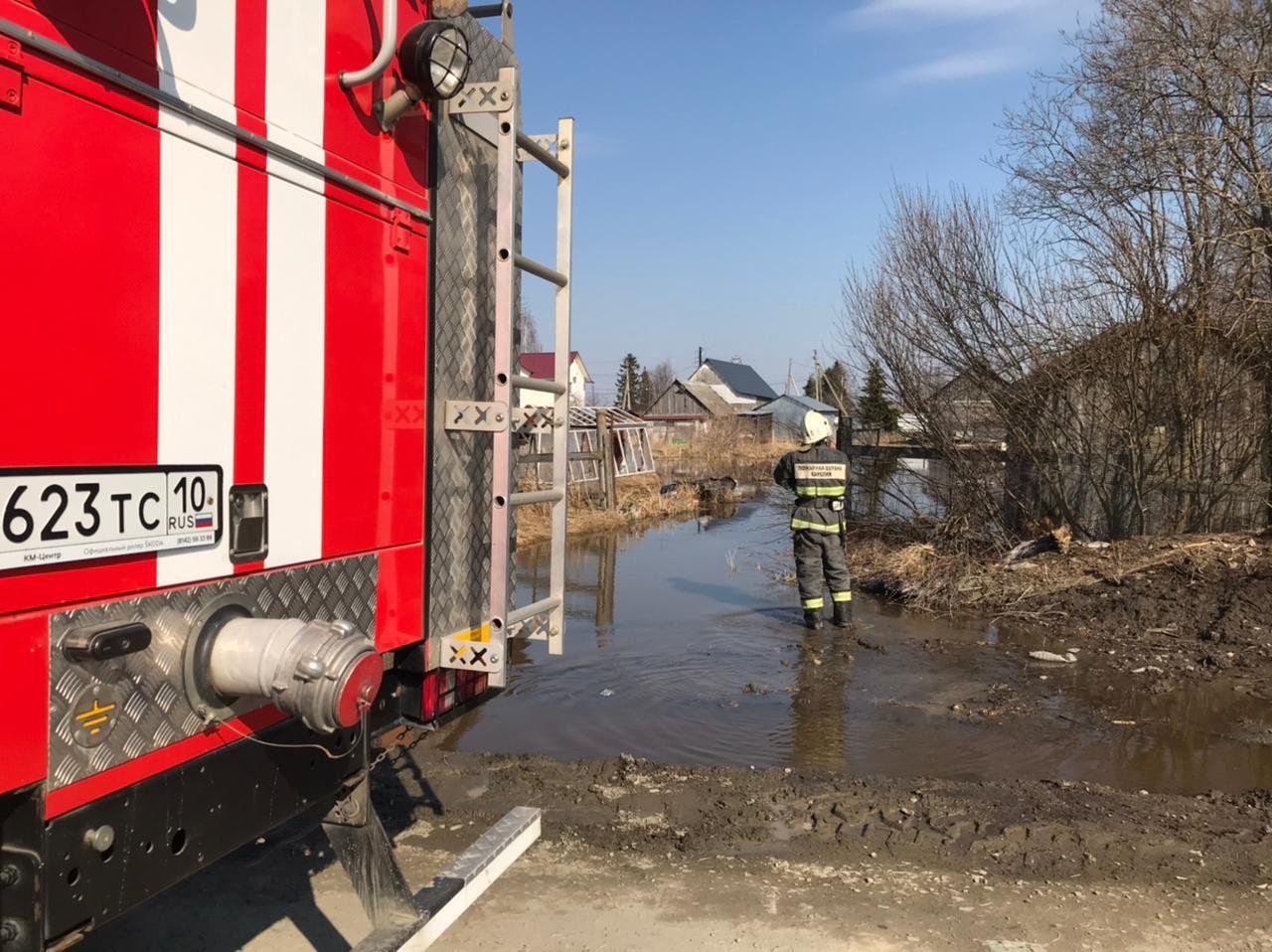 В поселке Новая Вилга затопило улицу. Воды было столько, что откачивать ее пришлось пожарным. Паблик Госкомитета Карелии по ОЖ и БН опубликовал фото с места событий.