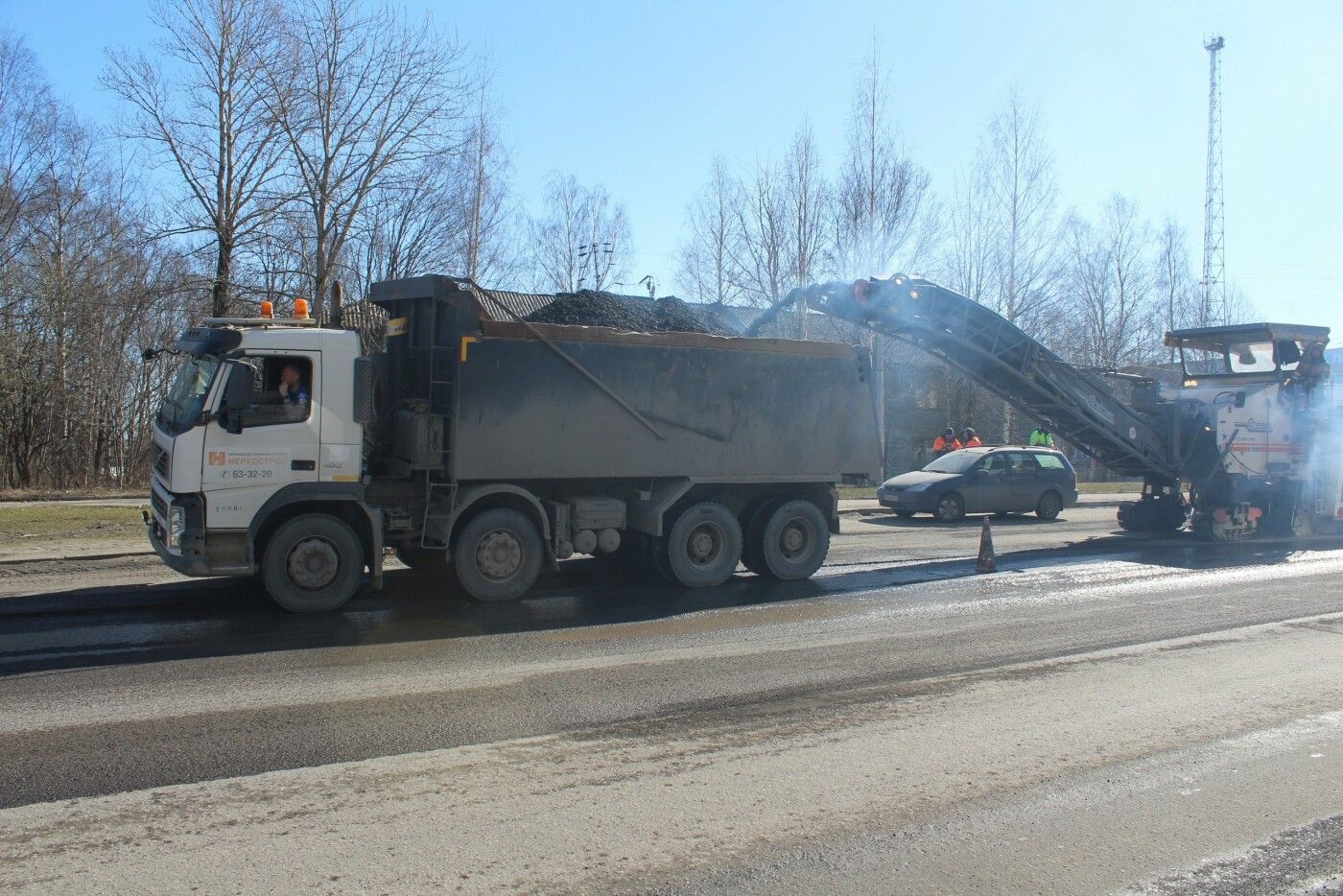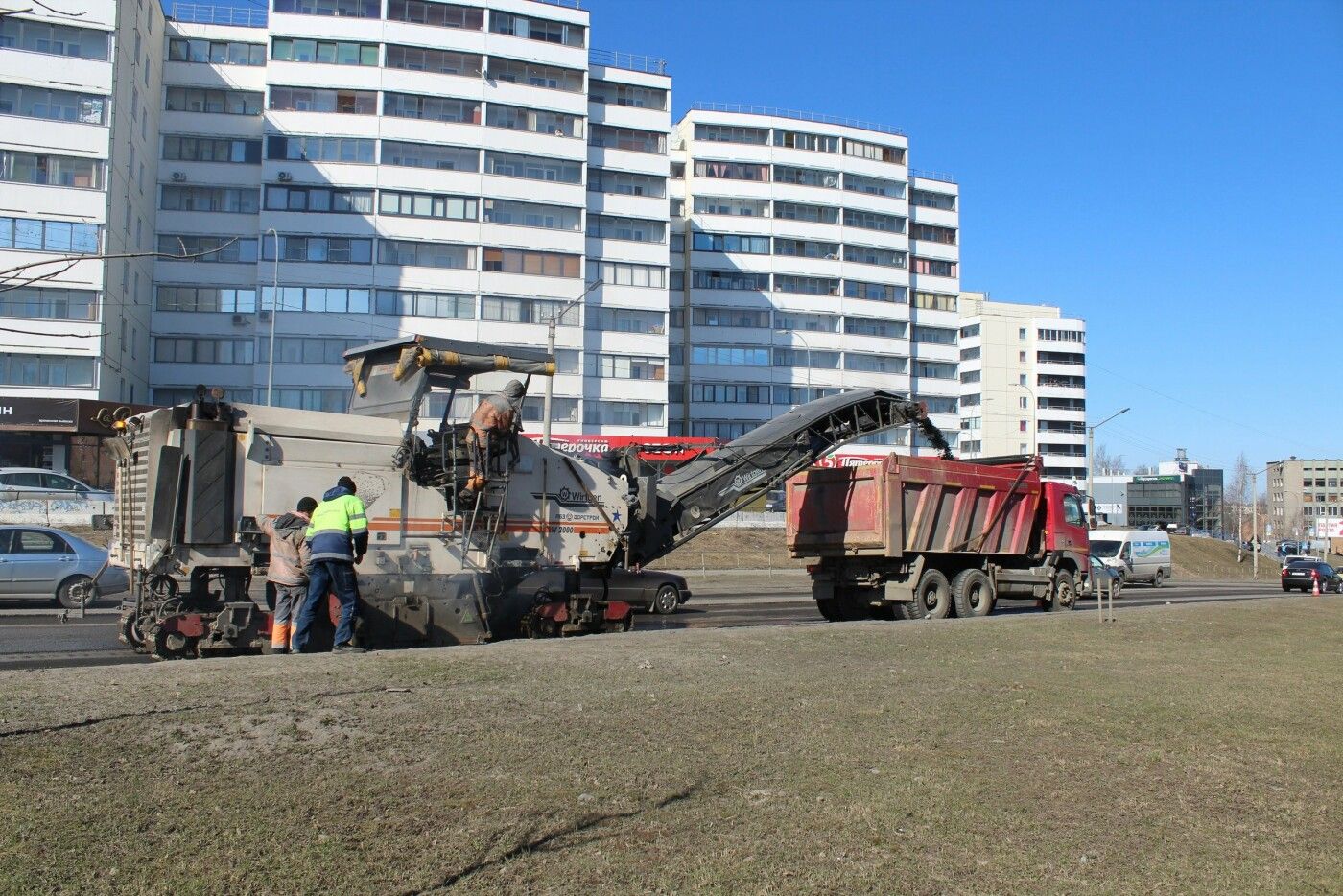 Бортовой камень уже демонтируют, с понедельника рабочие фрезеруют старое покрытие. Общая протяженность дороги на улице Правда –1,6 км, а площадь превышает 27 тысяч квадратных метров. На участке планируется частично заменить бортовой камень и асфальт.