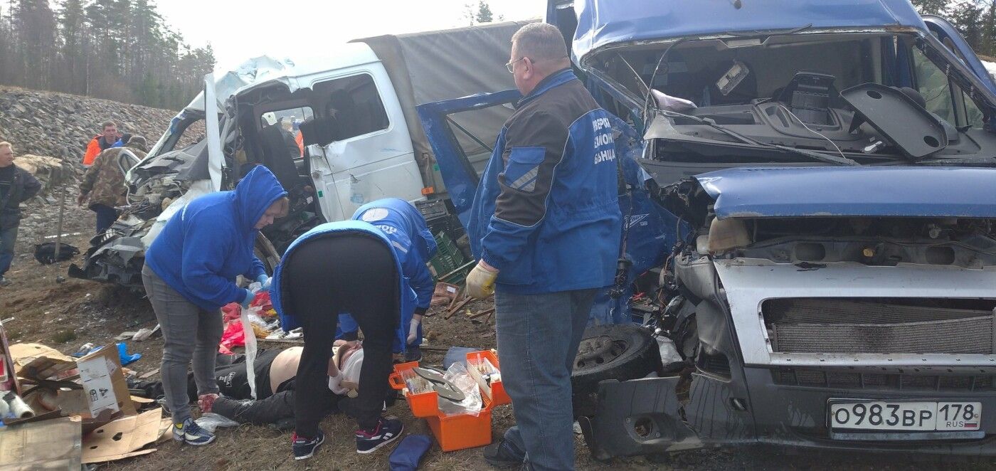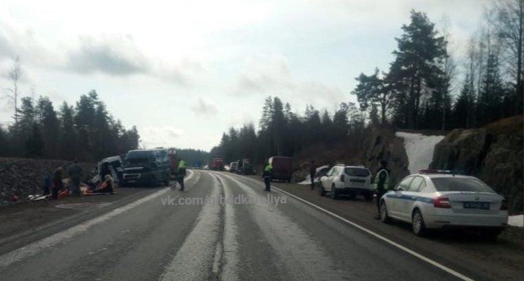 Авария произошла в Лахденпохском районе в 09:55 на 166 км трассы «Санкт-Петербург Сортавала». Столкнулись автомобили «Фиат Дукато» и «Газель». В результате происшествия до приезда медиков скончались три пассажира автомашины «Газель», водителя увезли на «скорой». Водитель и пассажир автомобиля «Фиат» также были госпитализированы.