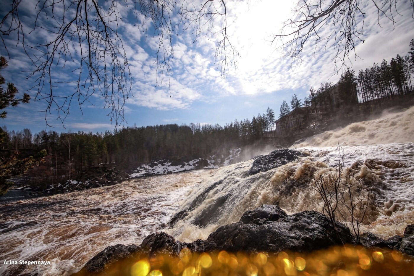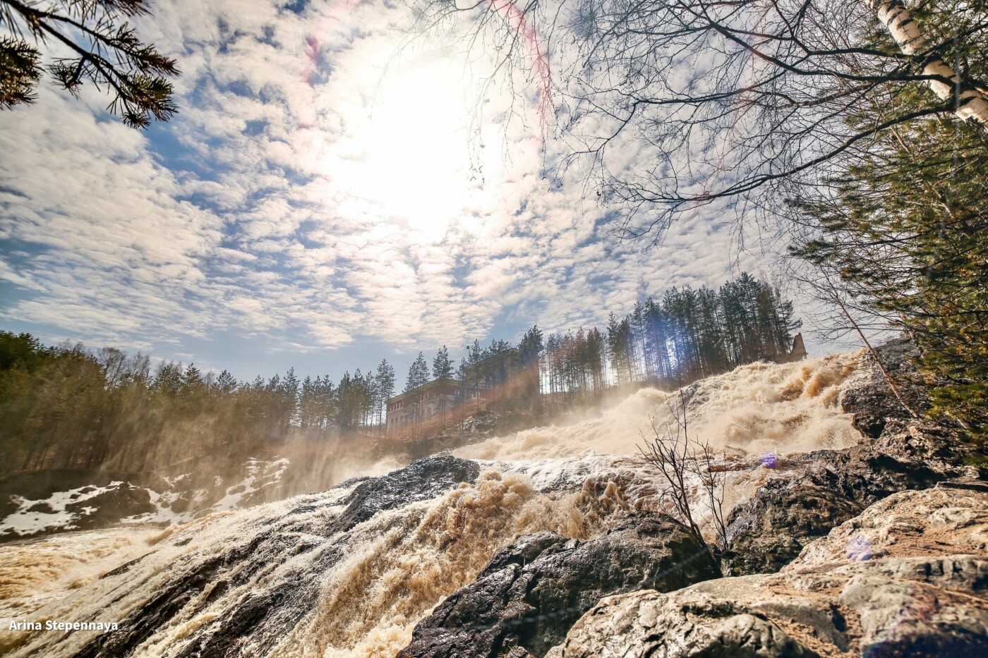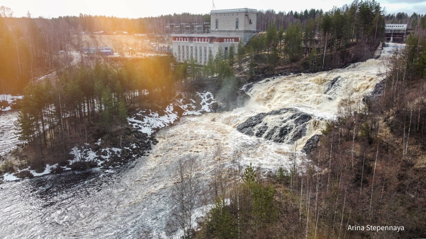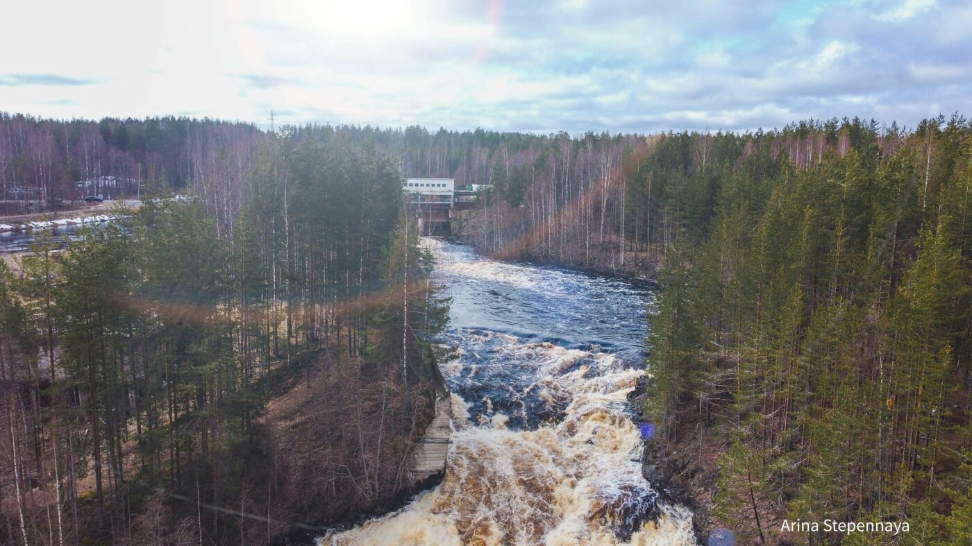 С 25 апреля вновь ожил искусственный водопад в поселке Гирвас Кондопожского района. Там начался водосброс Пальеозерской ГЭС.