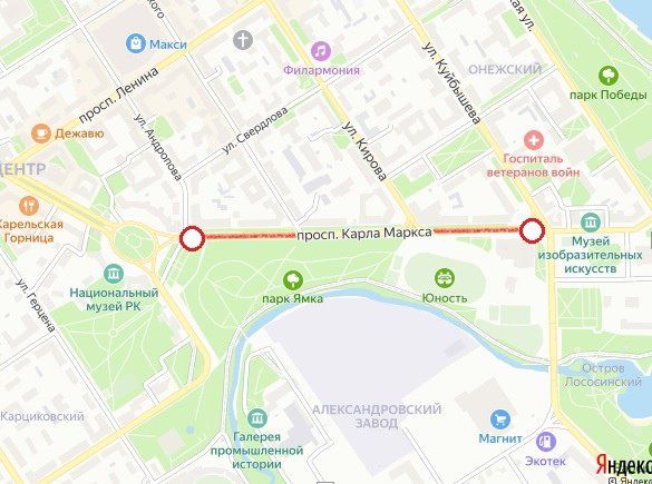 Схему движения изменят, чтобы предотвратить ДТП во время массовых праздничных мероприятий. В это время на площади Ленина пройдут республиканский этап всероссийской акции «Георгиевская ленточка», выставка народных художественных промыслов и ремесел Карелии. А на проспекте Карла Маркса любители спорта смогут принять участие в забегах.