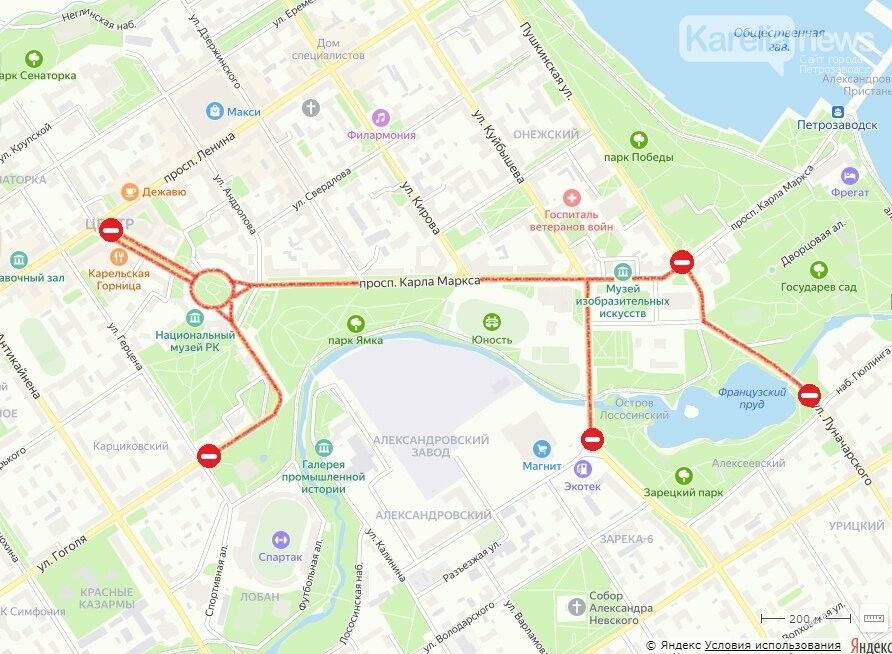 Для безопасности горожан во время массовых мероприятий будет ограничен проезд по нескольким центральным улицам карельской столицы. Об этом сообщила пресс-служба местной администрации.