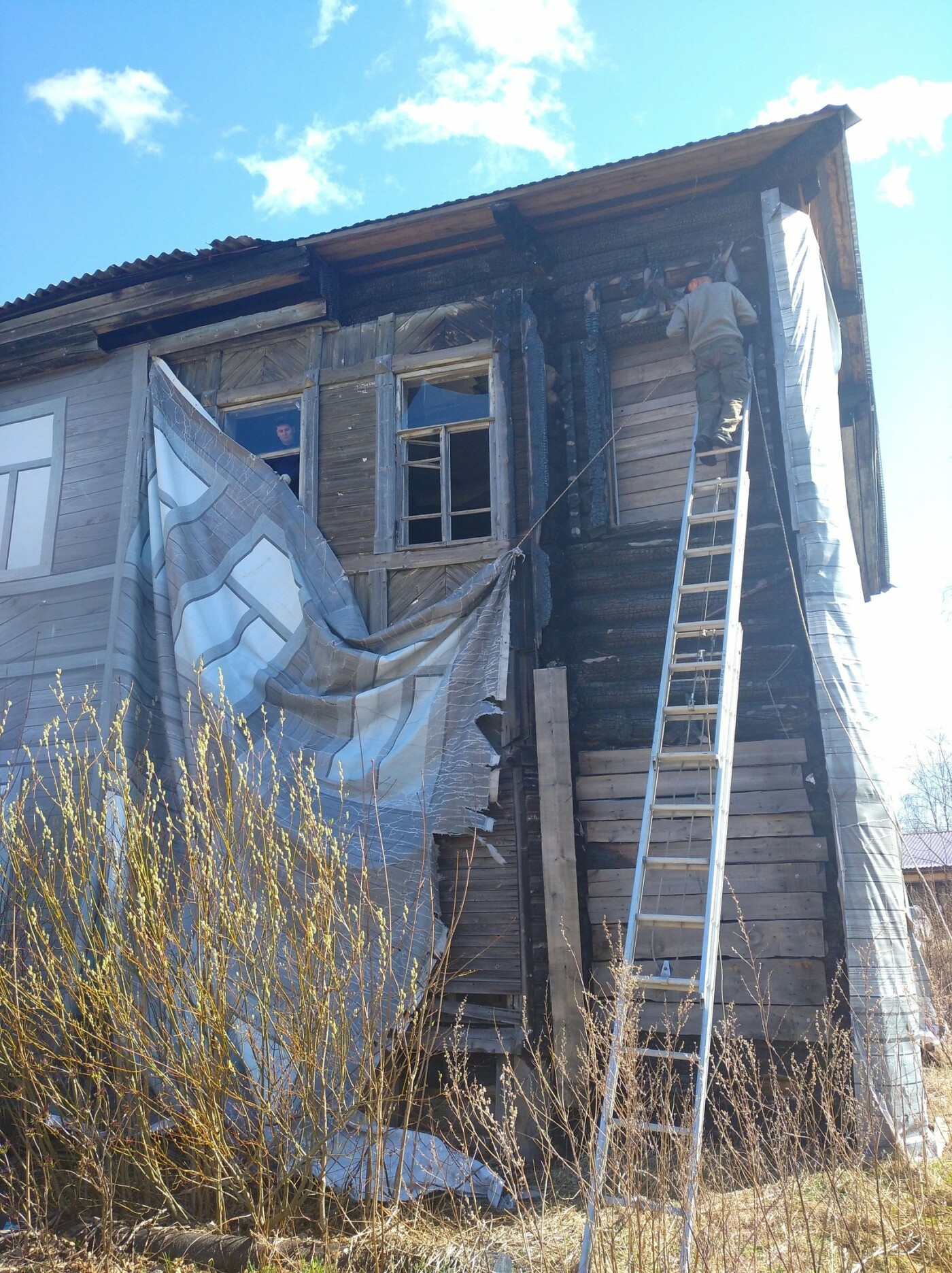 30 апреля личный состав ПЧ-35 по охране Олонца на площади Гагарина и улице 30-летия Победы вывесил флаги. Кроме того, пожарные подняли сорванный баннер, который закрывает полуразрушенное здание Екатерининской гимназии.