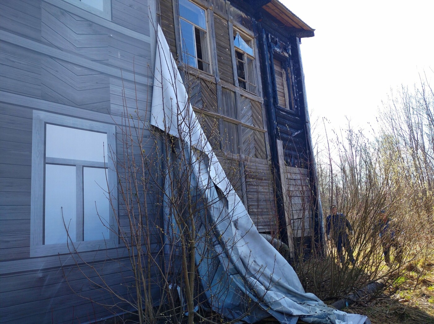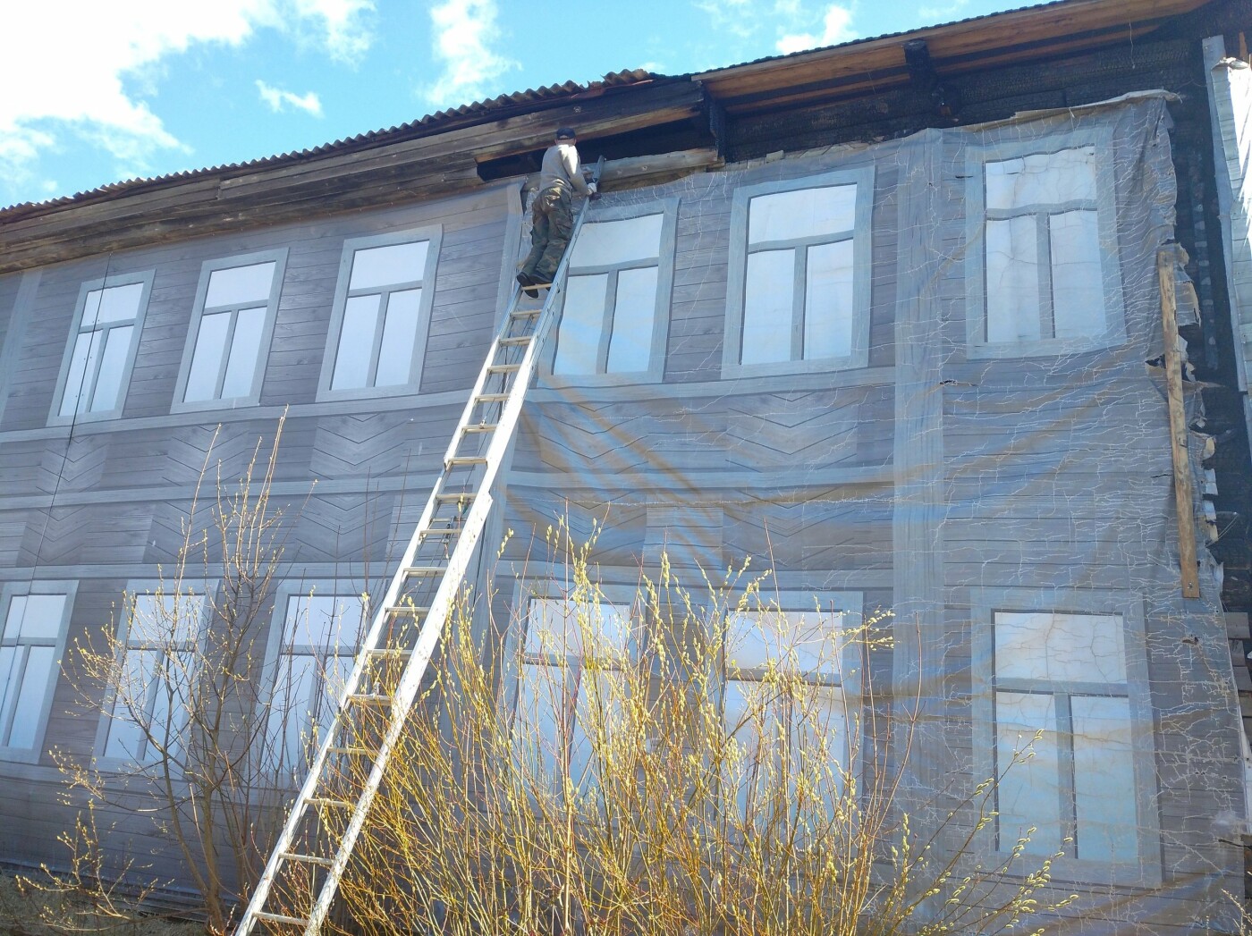 Здание Екатерининской гимназии в Олонце закрыли баннером. Фотографии опубликовали в группе ОПС по Олонецкому району.