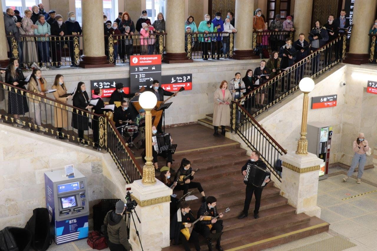Вчера, 8 мая, в канун Дня Победы на железнодорожном вокзале Петрозаводска прозвучали песни военных лет.