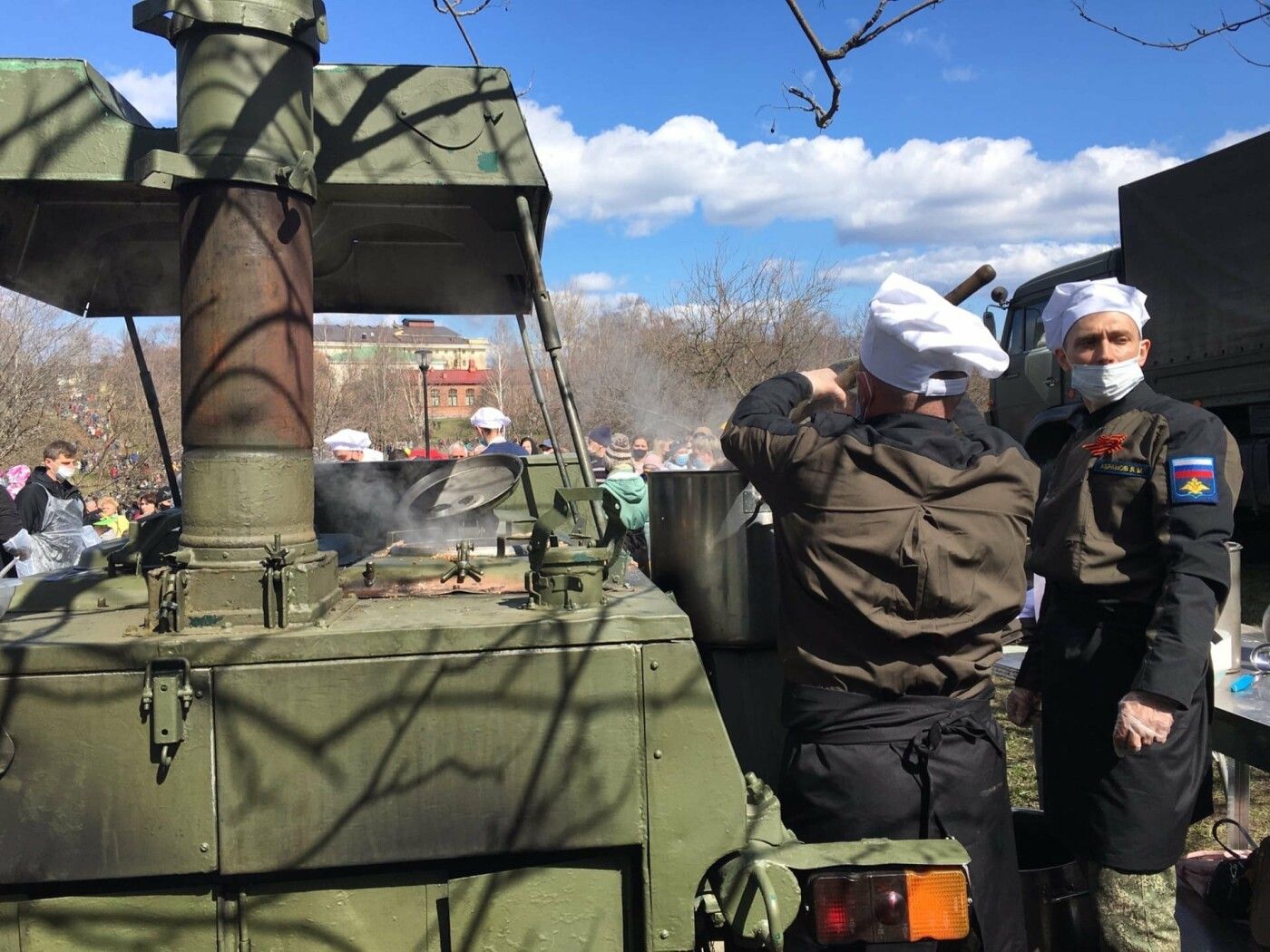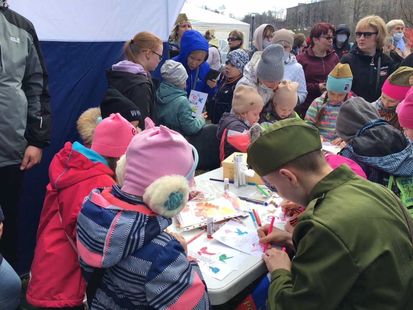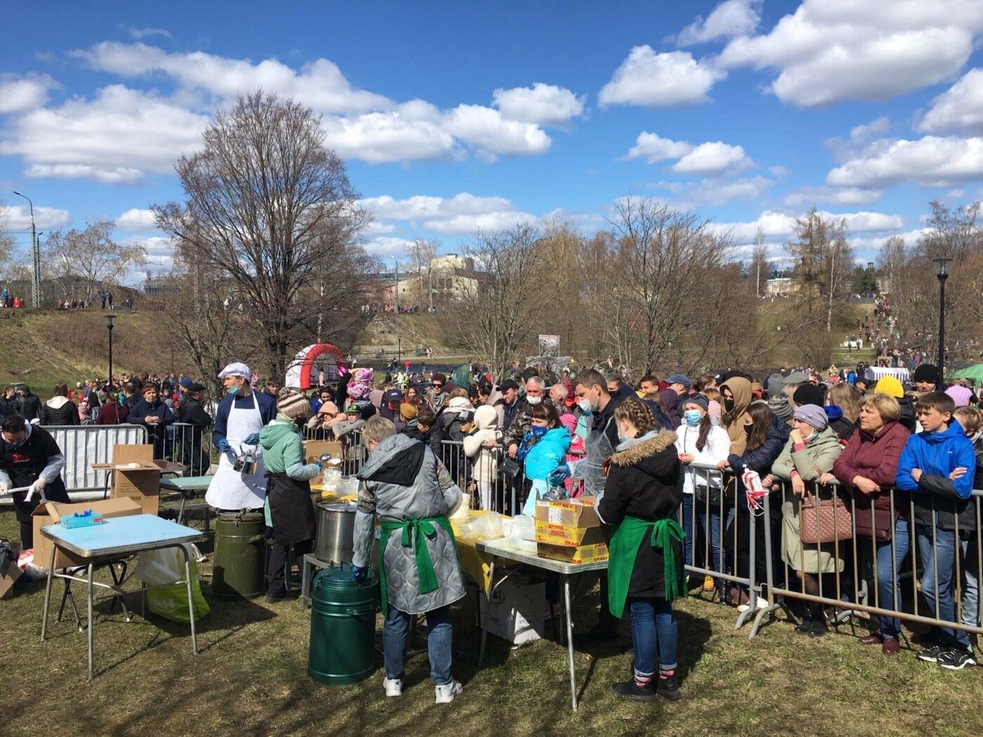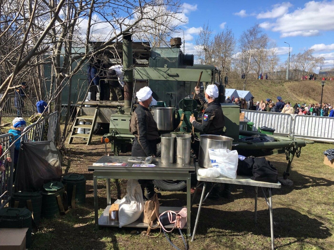 В пойме реке Лососинки проходят акция «Полевая почта», мастер-классы «Военный треугольник», «Письмо с фронта», «Открытка к 9 МАЯ». Здесь же горожан с 13:00 угощают «Солдатской кашей». В то же время на малой сцене стартовал марафон концертных и творческих программ.
