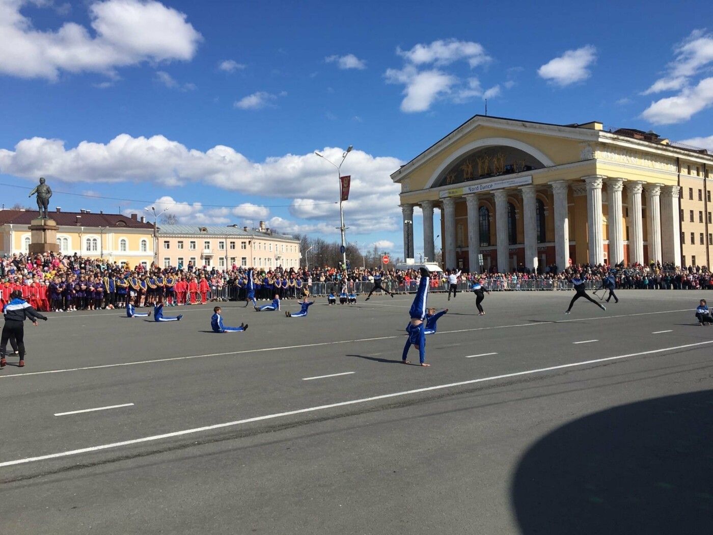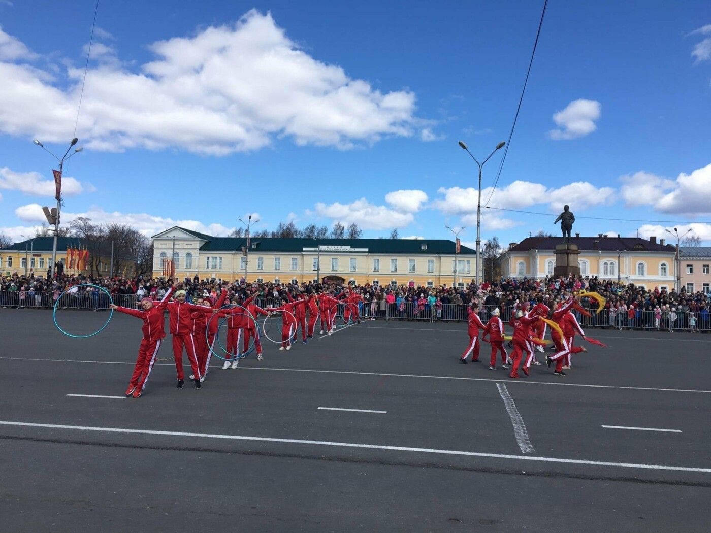На площади Кирова прошел торжественный марш, после которого провели «Спортивную оду Победы» – воспитанники петрозаводских спортшкол продемонстрировали свои умения в показательных выступлениях.