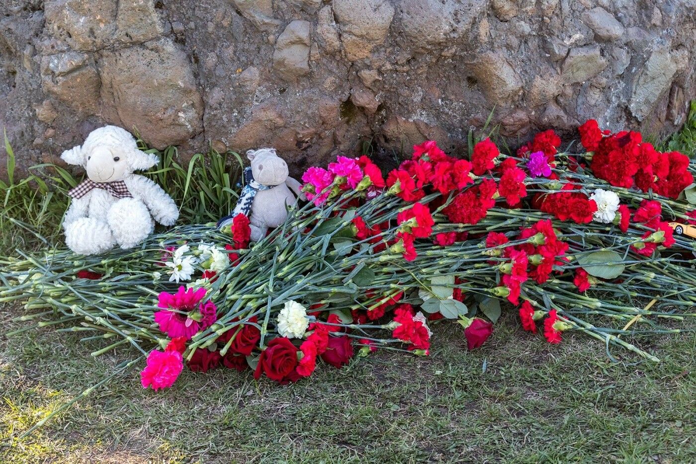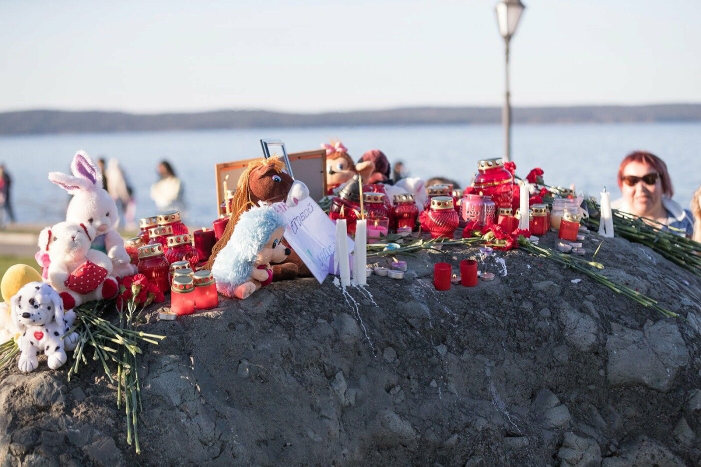 Петрозаводчане несли цветы, игрушки, зажигали свечи в память о расстрелянных 11 мая семи школьников и двух взрослых в гимназии в Казани.
