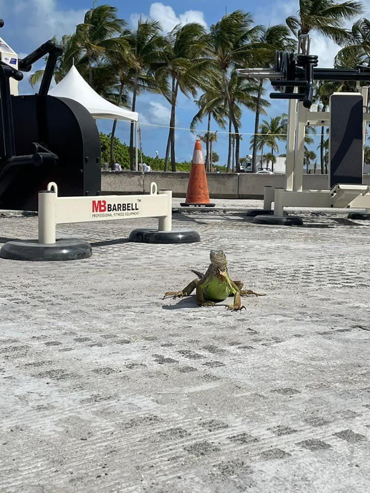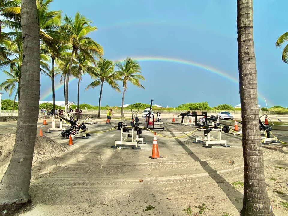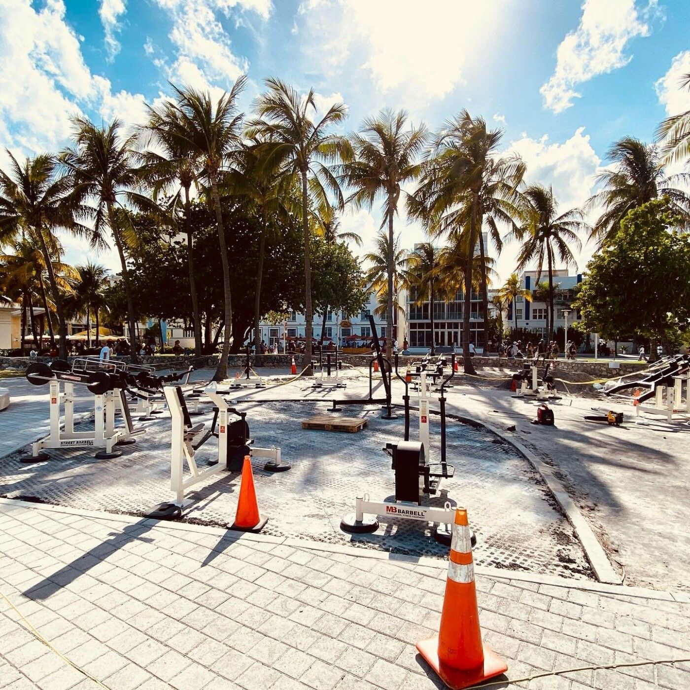 Всего 13 устройств, включая 8 машин с запатентованной системой переменной нагрузки (VLS), 2 станций для кузова, две кардиомашины и сумка для удара стритбарбелла! Теперь мы просто ждем, когда песок превратит его в этот уникальный во всем мире спортивный зал, который мы все ждали, и официально передаем его городу Майами Бич, — написал предприниматель.