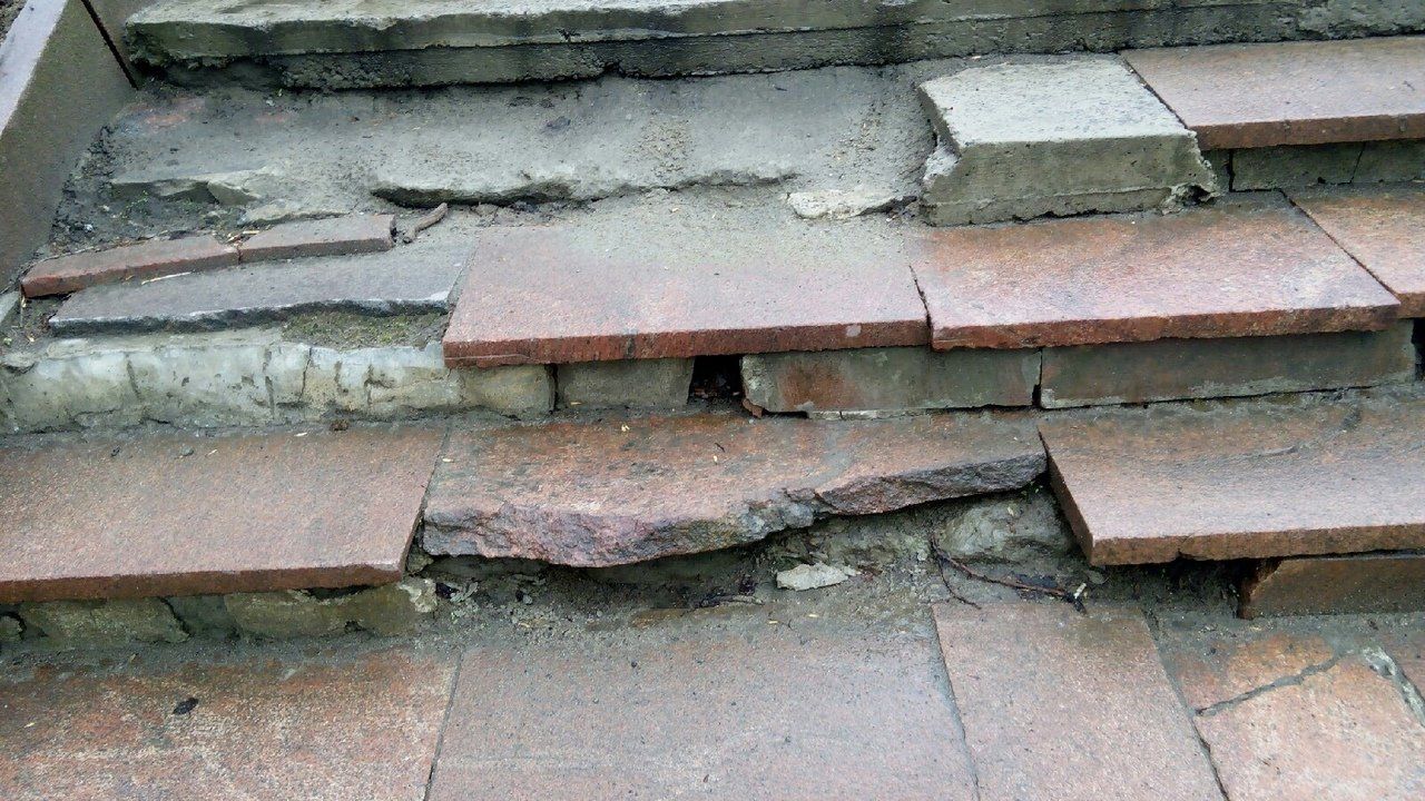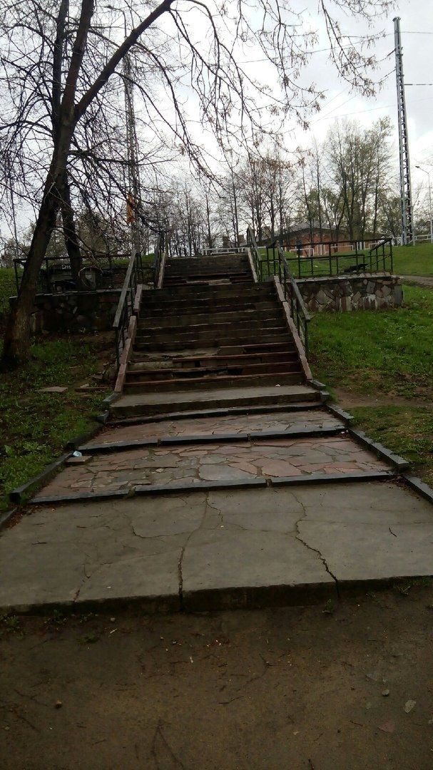 Вот-вот кто-нибудь убьется, так как куски лестницы отваливаются, перила сломаны. Напротив, ближе к площади Кирова установлена стела воинской славы, центр города, и такая позорная лестница, по которой гуляют жители и туристы города. Я уже молчу про фонтан, который уже много лет не работает, – написали горожане в паблике «Подслушано в ПТЗ».