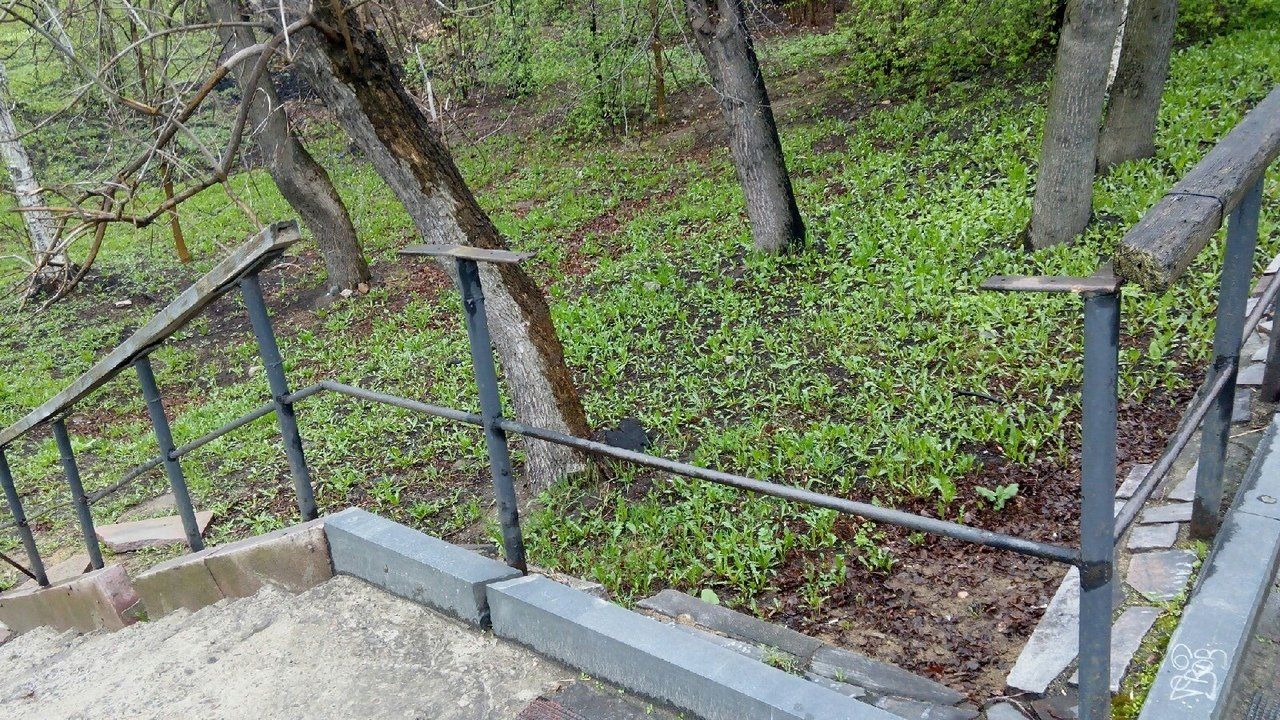 Каждый день по лестнице, которая ведет набережной Гюллинга в Зарецкий парк, ходят горожане и гости города. Мало того, что у туристов создается не лучшее впечатление о Петрозаводске, здесь еще и можно травмироваться. Облицовочная плитка отваливается, а перила частично выломаны.