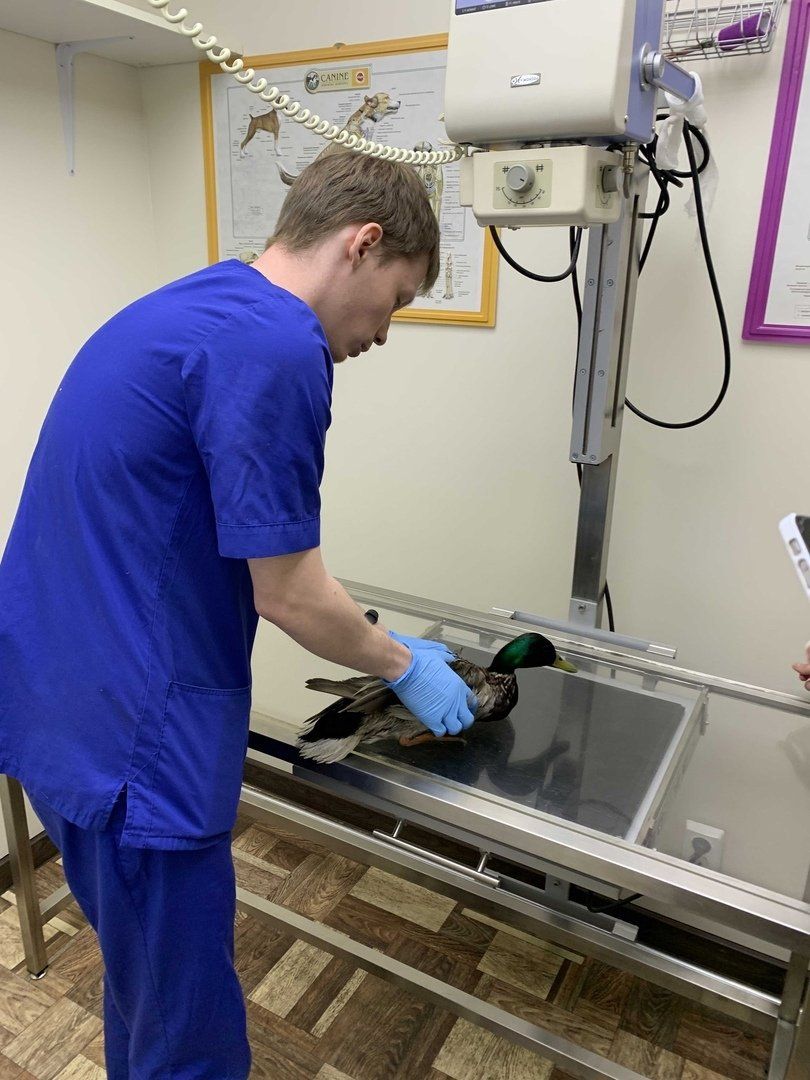 Раненую птицу удалось поймать. Ее отвезли в ветеринарную клинику на осмотр. Подозрения подтвердились – селезень не мог летать. Врач предположил, что его пернатый пациент пострадал в схватке с животным.